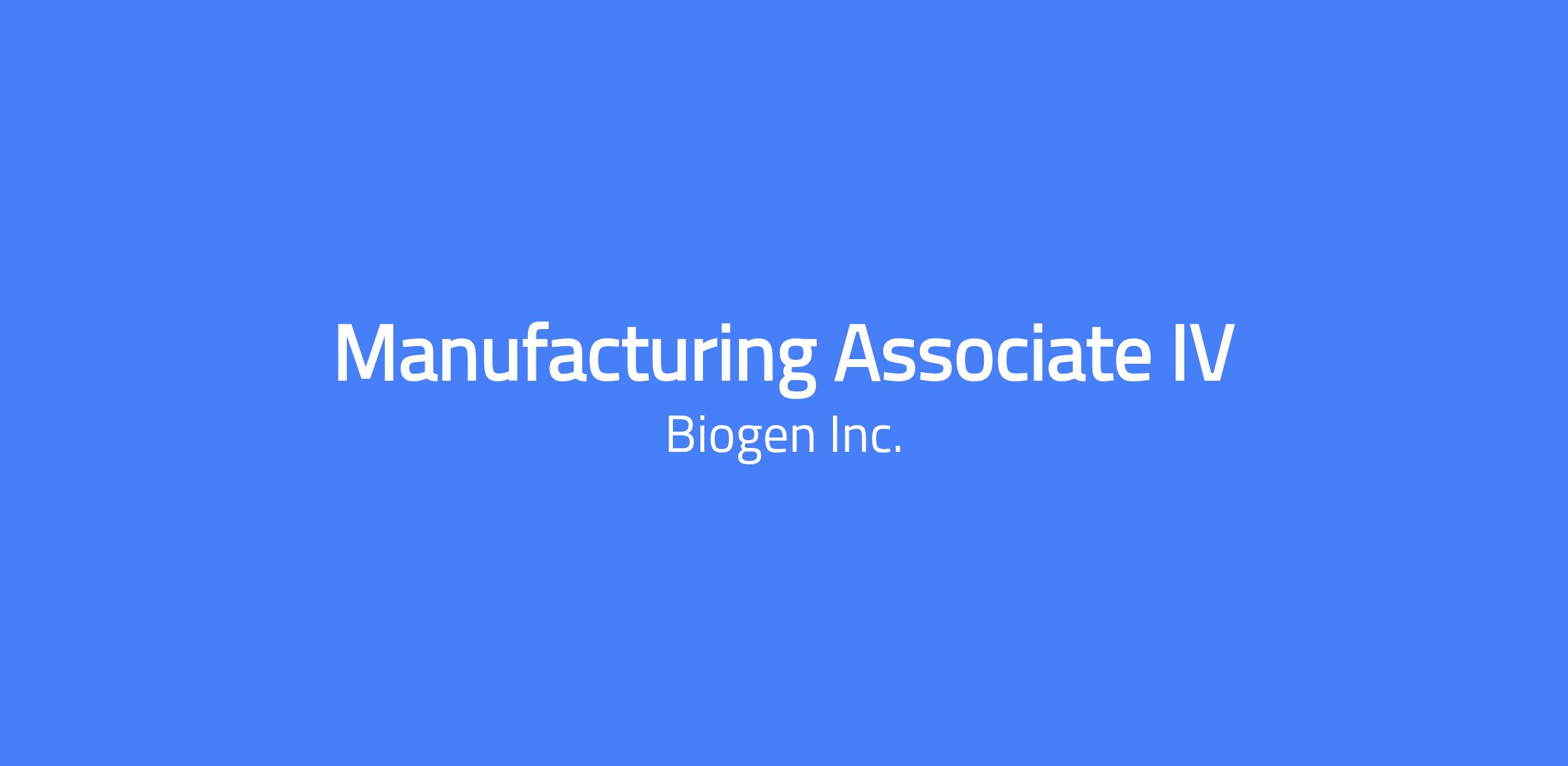 This role operates on a 2 2 3 schedule for Night Shift- 6p-6a. About This Role Our Manufacturing Associates perform processing steps and manufacturing support activities in our Drug Substance facility in Research Triangle Park (RTP). These teams are the backbone of our operations – each playing a critical role in delivering our therapies to the patients who need them. Our teams are organized by the steps in the biomanufacturing process that they operate in; including – Large Scale Cell Culture MAs perform these critical steps in a clean environment governed by Current Good Manufacturing Practices (cGMP). What You’ll Do Execute daily manufacturing activities, to include operating process equipment and executing validation protocols according to cGMP Standard Operating Procedures (SOPs) Document and record all cGMP data & information (including deviations) for processing steps and equipment activities. Create and revise key documentation like batch records, SLRs, and equipment logbooks Assist in conducting in-process sampling and sampling analysis (pH, Conductivity, Protein Concentration, Osmolarity, Cell Counts, etc.) Help maintain a clean and safe work environment, always focusing on audit readiness of process areas Be a team player and leader; always showing up to contribute your energy and focus Actively participate and lead in training and development initiatives, both for personal growth and for that of your team members Who You Are You are someone with a deep passion for doing work that furthers a mission to save lives. Biomanufacturing is complex, so you have a high degree of demonstrated learning agility and love a fast-paced work environment where everything you do is incredibly impactful. Requirements Bachelor’s Degree (STEM preferred) and at least 2 years of directly transferrable experience OR BioWork Certificate or Associate’s Degree + at least 2.5 year of directly transferrable experience OR High School Diploma (or equivalent) plus at least 3 years of direct and/or military experience Job Level: Entry Level Additional Information The base compensation range for this role is: $31.25-$40.87 Base salary offered is determined through an analytical approach utilizing a combination of factors including, but not limited to, relevant skills & experience, job location, and internal equity. Regular employees are eligible to receive both short term and long-term incentives, including cash bonus and equity incentive opportunities, designed to reward recent achievements and recognize your future potential based on individual, business unit and company performance. In addition to compensation, Biogen offers a full and highly competitive range of benefits designed to support our employees’ and their families physical, financial, emotional, and social well-being; including, but not limited to: Medical, Dental, Vision, & Life insurances Fitness & Wellness programs including a fitness reimbursement Short- and Long-Term Disability insurance A minimum of 15 days of paid vacation and an additional end-of-year shutdown time off (Dec 26-Dec 31) Up to 12 company paid holidays + 3 paid days off for Personal Significance 80 hours of sick time per calendar year Paid Maternity and Parental Leave benefit 401(k) program participation with company matched contributions Employee stock purchase plan Tuition reimbursement of up to $10,000 per calendar year Employee Resource Groups participation Why Biogen? We are a global team with a commitment to excellence, and a pioneering spirit. As a mid-sized biotechnology company, we provide the stability and resources of a well-established business while fostering an environment where individual contributions make a significant impact. Our team encompasses some of the most talented and passionate achievers who have unparalleled opportunities for learning, growth, and expanding their skills. Above all, we work together to deliver life-changing medicines, with every role playing a vital part in our mission. Caring Deeply. Achieving Excellence. Changing Lives. At Biogen, we are committed to building on our culture of inclusion and belonging that reflects the communities where we operate and the patients we serve. We know that diverse backgrounds, cultures, and perspectives make us a stronger and more innovative company, and we are focused on building teams where every employee feels empowered and inspired. Read on to learn more about our DE&I efforts. All qualified applicants will receive consideration for employment without regard to sex, gender identity or expression, sexual orientation, marital status, race, color, national origin, ancestry, ethnicity, religion, age, veteran status, disability, genetic information or any other basis protected by federal, state or local law. Biogen is an E-Verify Employer in the United States. We’re united by a shared purpose, proud of our work, and inspired by one another and the lives we strive to change. We are a global team with a commitment to excellence, and a pioneering spirit. As a mid-sized biotechnology company, we provide the stability and resources of a well-established business while fostering an environment where individual contributions make a significant impact. Our team encompasses some of the most talented and passionate achievers who have unparalleled opportunities for learning, growth, and expanding their skills. Above all, we work together to deliver life-changing medicines, with every role playing a vital part in our mission. Caring Deeply. Achieving Excellence. Changing Lives. Scam Advisory: Please be cautious of scam recruitment offers claiming to be from Biogen. All legitimate correspondence from a Biogen employee will come from a "@biogen.com" email account. Learn more about scams and fraudulent job postings here.