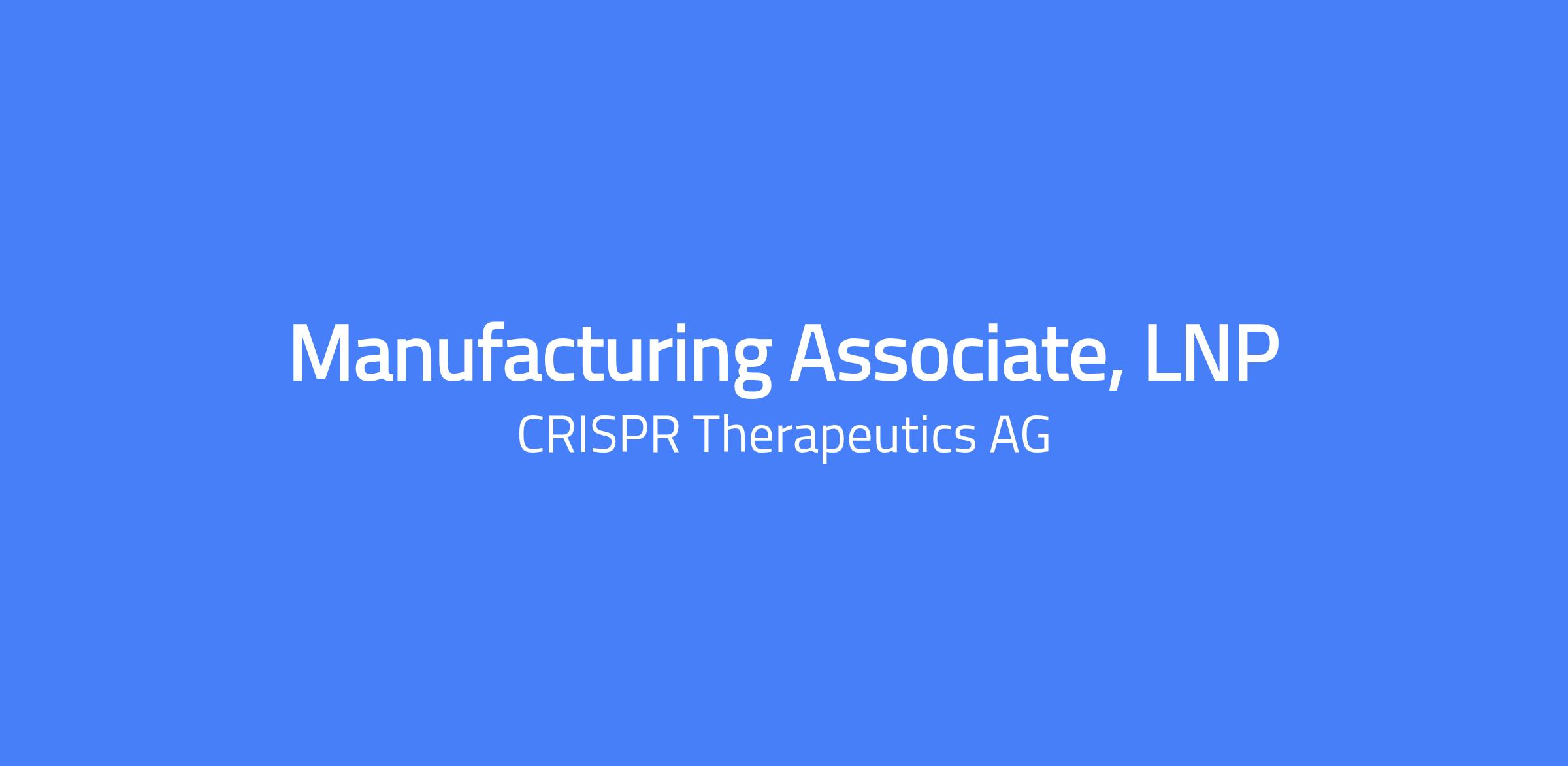 Job Description: Company Overview Since its inception over a decade ago, CRISPR Therapeutics has transformed from a research-stage company advancing programs in the field of gene editing, to a company with a diverse portfolio of product candidates across a broad range of disease areas including hemoglobinopathies, oncology, regenerative medicine, cardiovascular and rare diseases. The Nobel Prize-winning CRISPR science has revolutionized biomedical research and represents a powerful, clinically validated approach with the potential to create a new class of potentially transformative medicines. To accelerate and expand its efforts, CRISPR Therapeutics has established strategic partnerships with leading companies including Vertex Pharmaceuticals. CRISPR Therapeutics AG is headquartered in Zug, Switzerland, with its wholly-owned U.S. subsidiary, CRISPR Therapeutics, Inc., and R&D operations based in Boston, Massachusetts and San Francisco, California. Position Summary Reporting to the Manufacturing Sr Manager, the Manufacturing Associate will perform manufacturing activities associated with LNP GMP manufacturing within a state-of-the-art manufacturing facility at 33 New York Ave in Framingham, MA. A successful candidate will be responsible for the manufacture of LNP therapies for clinical studies and as a commercial product. This role requires clear communication across multiple departments for the execution of daily activities. The ideal candidate will have experience successfully performing formulated LNP Manufacturing within a GMP environment. Responsibilities Perform clinical / commercial product manufacturing for LNP therapies according to cGMP standards and SOPs including Lipid and RNA Prep, T-Mix, and TFF operations Perform aseptic vial filling, visual inspection, cryopreservation, process reagent formulation, and material kitting. Transfer raw material inside cleanroom suite using sanitizing reagents or equipment. Participates in technology transfer from Process Development to the Manufacturing group. Assist in the life cycle development of Standard Operating Procedures (SOPs) for manufacturing in collaboration with PD / MSAT and Quality Systems groups. Ensures all materials and equipment are identified and available in time for manufacturing operations. Execute standard work per manufacturing schedule Participate in Quality investigations and resolutions. Ensure cGMP compliance through consistent execution. Other duties and projects as assigned to meet departmental requirements. Minimum Qualifications Certificate, associate’s degree or higher in biological sciences or related fields and 2-5 years of relevant Manufacturing experience or related fields Available to work a flexible schedule as needed. Ability to don cleanroom garments and work within a classified environment (Grade B and C) Knowledge of GMP and industry standards T-Mix and TFF experience preferred Fluency in Windows and Microsoft Office applications Attentive to detail and accuracy Ability to effectively communicate and collaborate with internal stakeholders is essential Ability to work effectively in a collaborative team environment where results are achieved through influence and the incorporation of multiple points of view. Ability to execute and follow-through to completion Ability to lift 40 pounds Ability to stand for 6 hours in a clean room environment Self-driven, independently motivated, data driven and excellent problem-solving ability Competencies Collaborative – Openness, One Team Undaunted – Fearless, Can-do attitude Results Orientation – Delivering progress toward our mission. Sense of urgency in solving problems. Entrepreneurial Spirit – Proactive. Ownership mindset. Due to the nature of their work, our manufacturing and lab-based positions are located fully on-site. Manufacturing Associate: Base pay range of $35.00 per hour to $42.00 per hour + bonus, equity and benefits. The range provided is CRISPR Therapeutics’ reasonable estimate of the base compensation for this role. The actual amount will be based on job-related and non-discriminatory factors such as experience, training, skills, and abilities. CRISPR Therapeutics, Inc. is committed to equal employment opportunity and non-discrimination for all employees and qualified applicants without regard to a person's race, color, gender, age, religion, national origin, ancestry, disability, veteran status, genetic information, sexual orientation or any characteristic protected under applicable law. To view our Privacy Statement, please click the following link: http://www.crisprtx.com/about-us/privacy-policy Since its inception over a decade ago, CRISPR Therapeutics has transformed from a research-stage company advancing programs in the field of gene editing, to a company with a diverse portfolio of product candidates across a broad range of disease areas including hemoglobinopathies, oncology, regenerative medicine, cardiovascular and rare diseases. The Nobel Prize-winning CRISPR science has revolutionized biomedical research and represents a powerful, clinically validated approach with the potential to create a new class of potentially transformative medicines. To accelerate and expand its efforts, CRISPR Therapeutics has established strategic partnerships with leading companies including Vertex Pharmaceuticals. CRISPR Therapeutics AG is headquartered in Zug, Switzerland, with its wholly-owned U.S. subsidiary, CRISPR Therapeutics, Inc., and R&D operations based in Boston, Massachusetts and San Francisco, California, and business offices in London, United Kingdom. CRISPR Therapeutics, Inc. is committed to equal employment opportunity and non-discrimination for all employees and qualified applicants without regard to a person's race, color, gender, age, religion, national origin, ancestry, disability, veteran status, genetic information, sexual orientation or any characteristic protected under applicable law. To view our Privacy Statement, plea