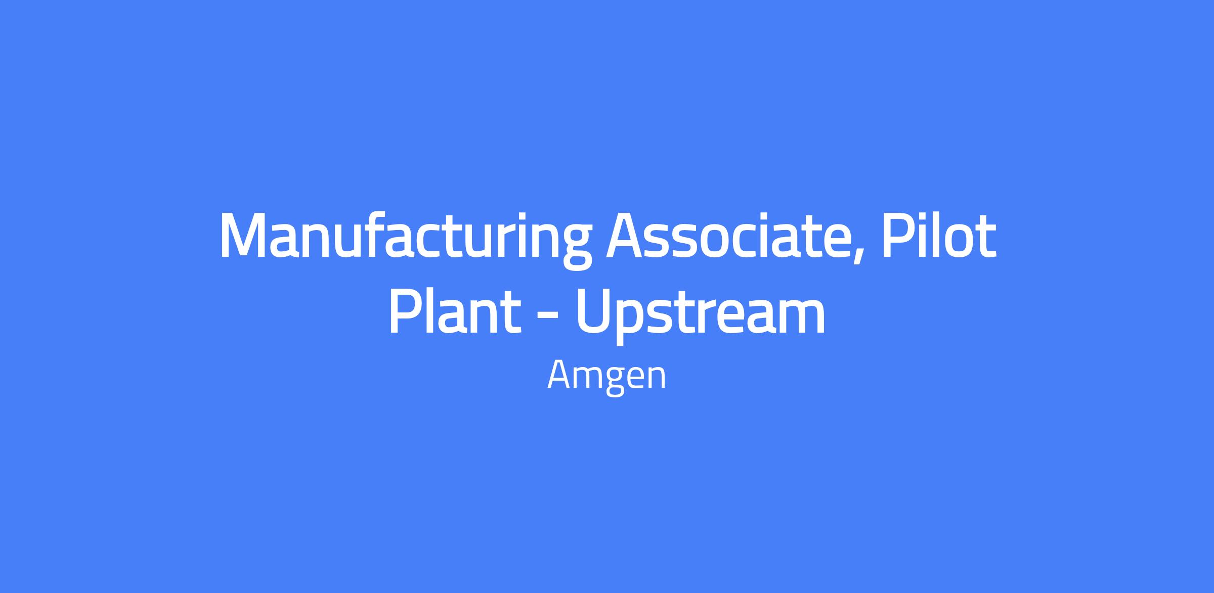 The Manufacturing Associate, Pilot Plant - Upstream is an entry-level position responsible for implementing a variety of production and technology-related operations in a large-scale Pilot Plant Upstream (cell culture) environment. The Pilot Plant delivers data and material supporting process development of early- and late-stage clinical biologic molecules and prototypes new technologies to advance Amgen’s current and future biologics manufacturing capabilities. You will work in a fast-paced environment to support innovation and scale-up of biologics processes.
