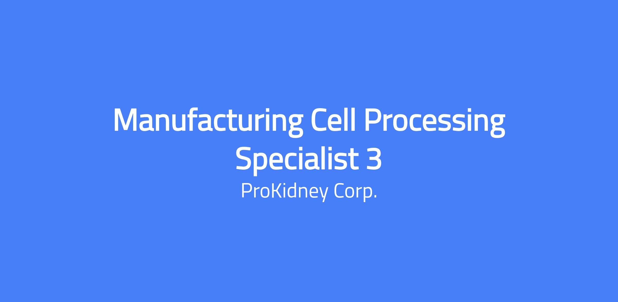 The Manufacturing Cell Processing Specialist 3 at ProKidney plays a critical role in supporting advanced manufacturing operations, focusing on cell processing activities and ensuring compliance with cGMP guidelines. This role involves operating and maintaining production equipment, including control rate freezers and orbital shakers, performing final product freezing and storage, and driving continuous improvement. The Manufacturing Specialist 3 is responsible for mentoring team members, leading investigations, and ensuring high levels of quality and compliance.