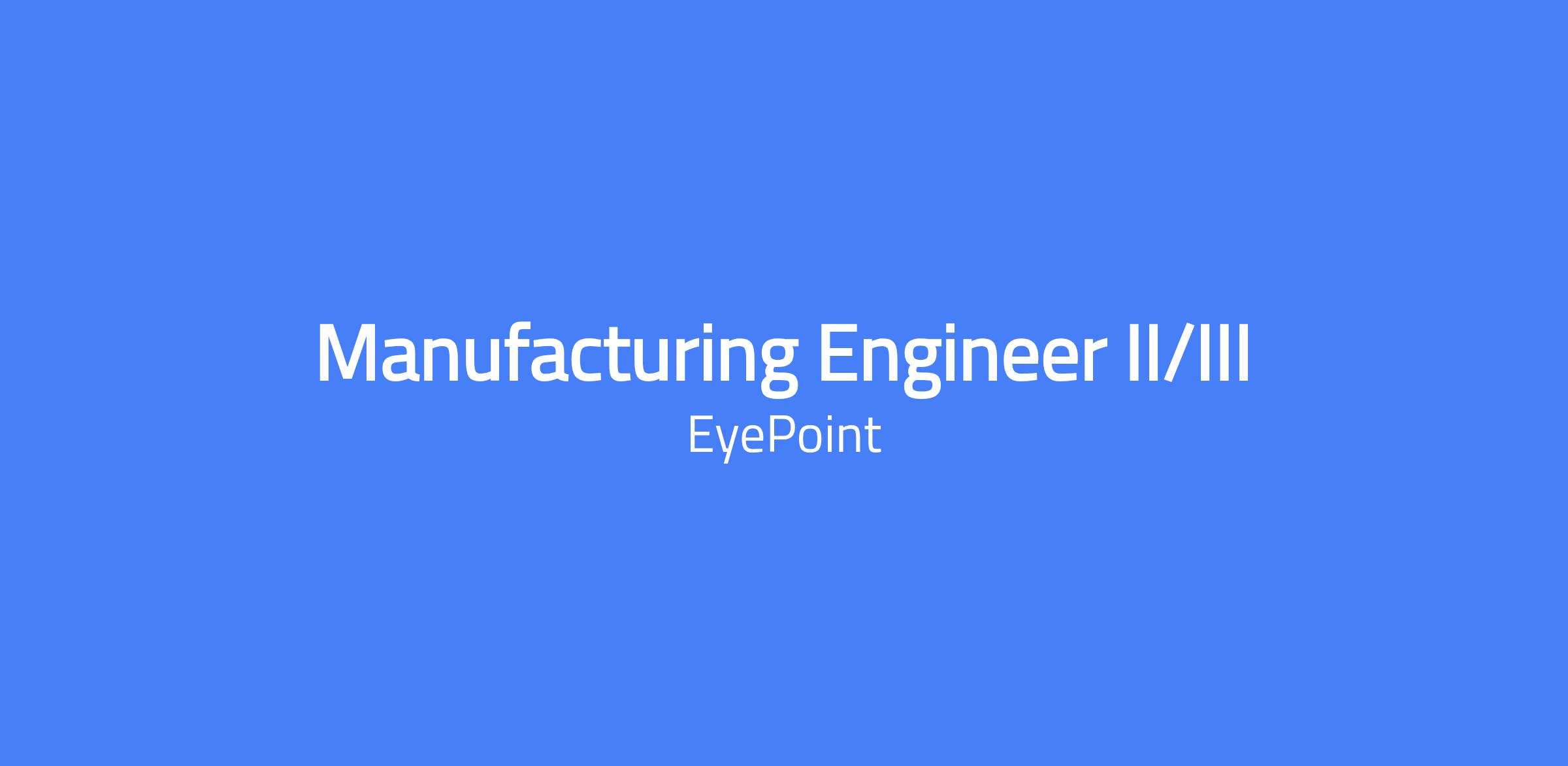 Manufacturing Engineer II/III based in Northbridge, MA. Responsible for process sustaining and improvement of all component, device, and packaging related projects. Requires the application of continuous improvement, equipment oversight, trending, layout planning, testing, data analysis and report writing to resolve and improve manufacturing efficiencies. Collaboration with internal R&D, Quality, Regulatory and Operations, as well as external vendors, to meet project timelines and maintain process sustaining activities.