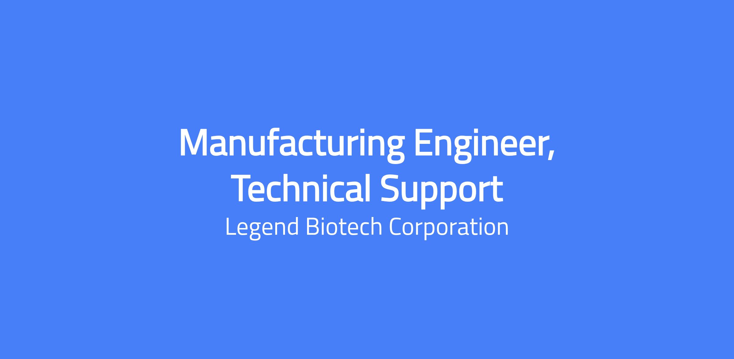 Legend Biotech is seeking a Manufacturing Engineer, Technical Support as part of the Technical Operations team based in Raritan, NJ.