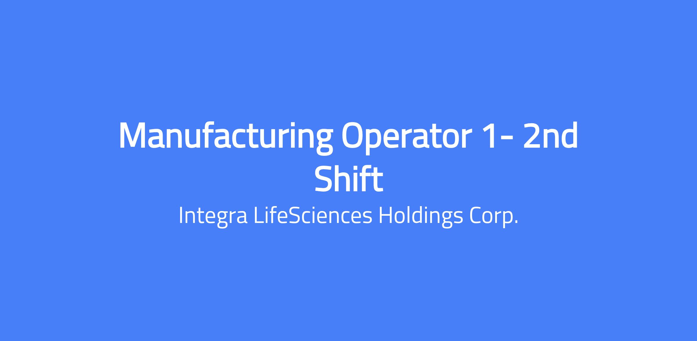 Changing lives. Building Careers. Joining us is a chance to do important work that creates change and shapes the future of healthcare. Thinking differently is what we do best. To us, change equals opportunity. Every day, our colleagues are challenging whatâs possible and making headway to innovate new treatment pathways to advance patient outcomes and set new standards of care. The Manufacturing Operator 1- 2nd Shift, performs post-formulation processing such as product cutting, inspection, defect identification, packaging, machine packaging operations, and labeling and boxing to produce the finished good. Also performs sub assemble post chemical processing such as cross linking required to produce collagen-based products. All work streams include responsibility in the setup, operation, and cleaning of all clean room manufacturing equipment. All chemical processing operations are performed in ISO Class 5 or ISO Class 7 areas and require proper Clean Room gowning. All processing is performed in compliance with Good Manufacturing Practices (GMP), Quality Systems Regulations), Standard Operating Procedures (SOPâs) and Health and Safety requirements. Operate in a team environment focused on daily milestones and quality throughout. This is a second shift role. (3:00 p.m. - 11:30 p.m.) .ESSENTIAL DUTIES AND RESPONSIBILITIES Operate, maintain, and troubleshoot process equipment utilized in the collagen business, and be able to make minor equipment adjustments as needed. Responsible for performing precise measurements and using measurement equipment to accurately add chemicals to batches. Responsible for the cross linking, cutting, packaging, and boxing of the product in its finished goods form, which includes performing visual product and component inspections to identify and remove defects. Pass and maintain gowning qualification to perform Gowning Requirement for ISO Class 5 Clean room operations or ISO Class 7 Clean room operations. Responsible for accurately maintaining legible and accurate records, required logs, books, records, and other procedures to comply with regulatory requirements, Good Manufacturing Practices (GMP), Quality Systems Regulations, Standard Operating Procedures (SOPâs), and Health and Safety requirements. Interface with QA/QC/Material departments during course of work to coordinate inspections and efficient flow of subassemblies and completed product. Enter and record production activities in Oracle MRP systems to issue material and labor hours to specific work orders. Follow applicable Standard Operating Procedures, Quality System Regulations, and ISO 13485 requirements. DESIRED MINIMUM QUALIFICATIONS The requirements listed below are representative of the knowledge, skill, and/or ability required for this position. High School diploma or equivalent. Degree in a related science a plus. 0 - 2 years of chemical processing experience or batch mixing in Medical Device or Pharmaceutical manufacturing industry. Production experience is highly desirable. Basic computer skills for email and data entry. Must read, write, and speak in English, and communicate clearly and concisely. Fundamental understanding of mathematics and chemistry. Able to participate in a team-oriented environment, willingness to assist and train others Able to work independently with minimal supervision Ability to operate, maintain and troubleshoot process equipment, and make minor adjustments as needed. Ability to gown to ISO Class 5 and 7 Clean Room standards. Able to work overtime Support department and plant Safety goals by continuously demonstrating safe behavior. Maintain a clean and orderly work area. Ability to work flexible shifts, and flexible days within the week to meet batch milestone requirements Perform other manufacturing activities as assigned by the department leadership TOOLS AND EQUIPMENT USED Lyophilizers, Autoclave, homogenizers, grinder, vacuum pump, pH meters, thermometers, balances (scales), water bath circulators,sonicators, humidity cabinet, mixers, centrifuge, blenders, air gun, drop indicator, Filamatic filling machines, slicer machines, scalpels, temperature recorders, Crosslinking chamber, humidification chamber, compression unit, cutting table, sealing machines, shrink wrap machines. PHYSICAL REQUIREMENTS The physical requirements listed in this section include, but are not limited, to the motor/physical abilities and skills require of position to successfully undertake the essential duties and responsibilities of this position. In accordance with the Americans with Disabilities Act (ADA), reasonable accommodations may be made to empower individuals with disabilities to undertake the essential duties and responsibilities of the position. While undertaking the essential duties and responsibilities of the position, the employee must repeatedly sit, listen, speak, and write/type. The employee must be able to stand for 8 hours, lift to 60lbs and climb ladders without assistance. The employee is required to go to all areas of the company. Must be able to bend and lift 30 to 60 lbs without assistance daily. Ability to gown to ISO Class 5 type Clean Room standards and/or additional clean room clothing. Ability to gown to ISO Class 7 type Clean Room standards and/or additional clean room clothing. Ability to stand for 8 hours. Must be able to climb step ladders without assistance. Vision: Requires eyesight correctable to 20/25 to detect any defect in product/materials. Visual acuity adequate to perform job duties, including meeting all of quality reclassification. Requires normal color perception. Salary Pay Range: $19.19 - $25.43 USD Hourly Our salary ranges are determined by role, level, and location. Individual pay is determined by several factors including job-related skills, experience, and relevant education or training. In addition to base pay, employees may be eligible for bonus, commission, equity or other variable compensation. Your recruiter can share more about the 