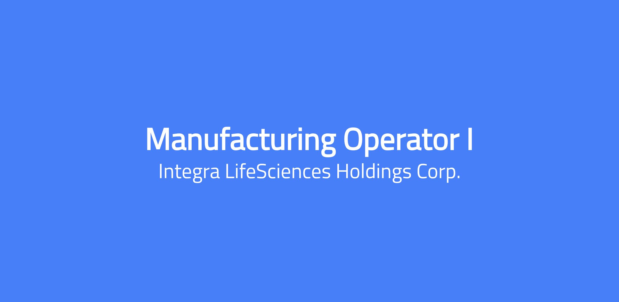 Changing lives. Building Careers. Joining us is a chance to do important work that creates change and shapes the future of healthcare. Thinking differently is what we do best. To us, change equals opportunity. Every day, our colleagues are challenging whatâs possible and making headway to innovate new treatment pathways to advance patient outcomes and set new standards of care. The Manufacturing Operator follows established Standard Operating Procedures to perform functional testing. Operates CUSA tip testing consoles to ensure function of products. Operates the Cusa Bender. Uses multiple software platforms for completing work such as Windows, Agile, Oracle, and Excel. To perform this job successfully, an individual must be able to perform each essential duty satisfactorily. Primary responsibilities are to: Ensures completion of tasks as directed by SOPs, routers, prints, work instructions, and manufacturing schedules. May package and test manufactured and purchased parts. May enter and transfer items in Oracle without assistance. Works closely with supervisor on any process challenges that require support from other departments. Follows standard operating procedures and Work Instructions to test manufactured and purchased parts. May operates CUSA Tip testing consoles for both internal and externally manufactured tips. Follows standard operating procedures to support general housekeeping in area. Always observes Companyâs safety procedures and policy. Performs other duties as required. May operate the Cusa Bender. Note: Other duties may be assigned as necessary. QUALIFICATIONS The requirements listed below are representative of the knowledge, skill and/or ability required for this position. Education: High school diploma or GED required with 0 - 2 years of experience. Must be able to read and write in English. Must be able to demonstrate comprehension of written English by successfully completing unassisted written tests, including, but not limited to, Work Instructions and Standard Operating Procedures. Must be able to observe company policies and safety procedures at all times. Must be able to give and welcome constructive feedback; contribute to building a positive team spirit. Must be able to treat others with respect; work with integrity and ethically; uphold organizational values. TOOLS AND EQUIPMENT USED CUSA tip testing consoles, Bending, and washing machines and personal computers. Use of Personal Protective Equipment (PPE) when required. Ability to utilize a desktop computer with typical business programs installed, including spreadsheets, word processing and Oracle systems. Strong computer skills are required. Knowledge and experience with MRP/ERP systems is a plus. Salary Pay Range: $16.68 - $22.12 USD Hourly Our salary ranges are determined by role, level, and location. Individual pay is determined by several factors including job-related skills, experience, and relevant education or training. In addition to base pay, employees may be eligible for bonus, commission, equity or other variable compensation. Your recruiter can share more about the specific salary range for your preferred location during the hiring process. Additional Description for Pay Transparency: Subject to the terms of their respective plans, employees and/or eligible dependents are eligible to participate in the following Company sponsored employee benefit programs: medical, dental, vision, life insurance, short- and long-term disability, business accident insurance, and group legal insurance, and savings plan (401(k)). Subject to the terms of their respective policies and date of hire, Employees are eligible for the following https://jobs.integralife.com/total-rewards/ Integra LifeSciences is an equal opportunity employer, and is committed to providing equal employment opportunities to all qualified applicants and employees regardless of race, marital status, color, religion, sex, age, national origin, sexual orientation, physical or mental disability, or protected veteran status. This site is governed solely by applicable U.S. laws and governmental regulations. If you'd like more information on your rights under the law, please see the following notices: EEO Is the Law | EOE including Disability/Protected Veterans Integra LifeSciences is committed to provide qualified applicants and employees who are disabled veterans or individuals with disabilities with needed reasonable accommodations in accordance with the ADA. If you have difficulty using our online system due to a disability and need an accommodation, please email us at careers@integralife.com. Unsolicited Agency Submission Integra LifeSciences does not accept unsolicited assistance from search firms for employment opportunities. All CVs/resumes submitted by search firms to any employee at our company without a valid written search agreement in place for this position will be deemed the sole property of our company. No fee will be paid in the event a candidate is hired by our company as a result of an agency referral where no pre-existing agreement is in place. A formal written agreement is required before engaging any agency, and it must be executed and authorized by the Vice President, Talent Acquisition. Where agency agreements are in place, introductions (the initial sharing of a candidateâs name, resume, or background) are position-specific and may only occur within the scope of that approved agreement. Please, no phone calls or emails. Integra - Employer Branding from Integra LifeSciences on Vimeo Changing Lives. Building Careers. Integra LifeSciences, a world leader in medical technology, is dedicated to limiting uncertainty for surgeons, so they can concentrate on providing the best patient care. Integra offers innovative solutions in neurosurgery, reconstructive and general surgery, and regenerative wound care. Founded in 1989 Integra is headquartered in Princeton, New Jersey and has more than 4,000 employees worldwide. Integraâs commo