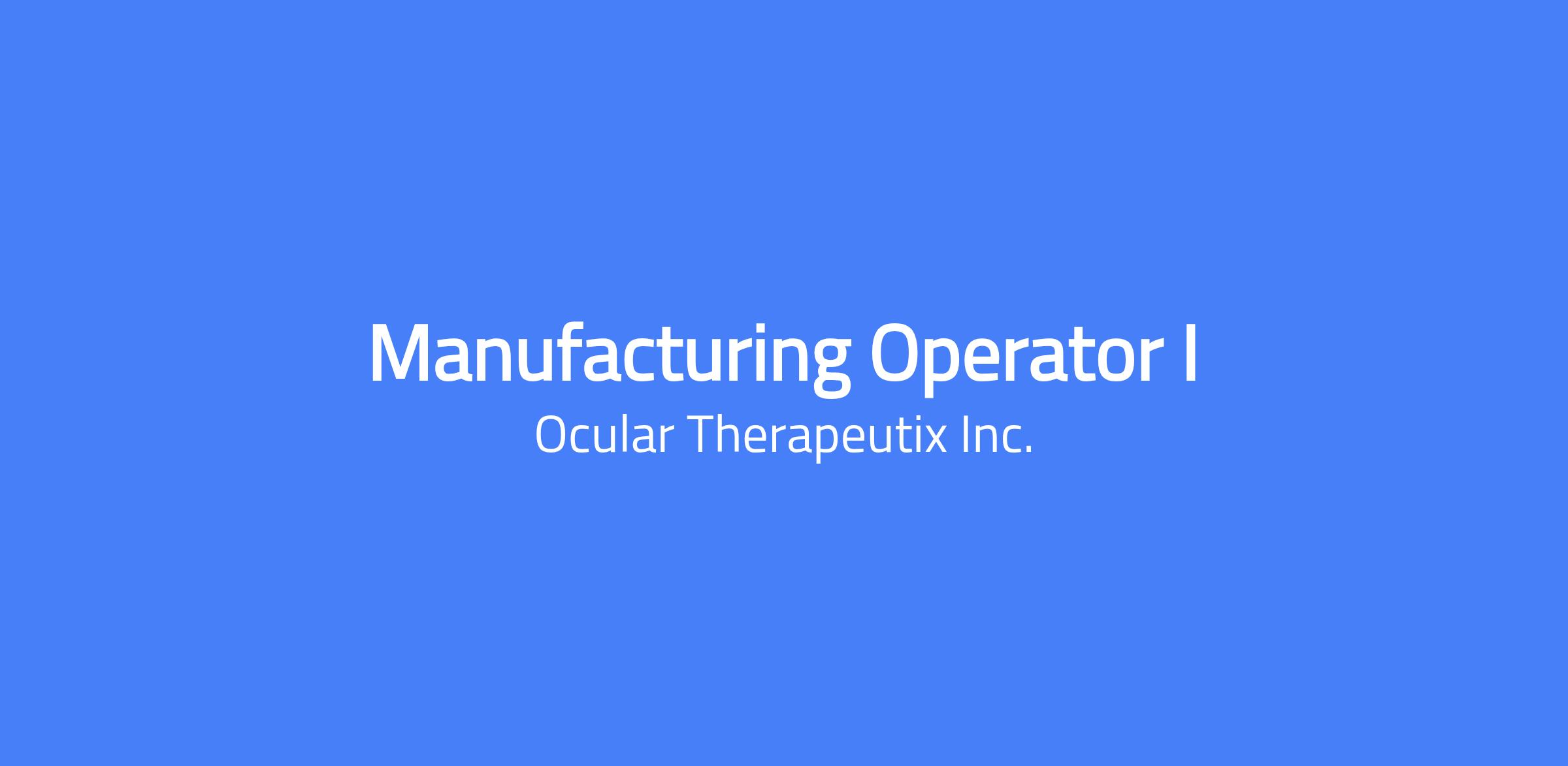 The Manufacturing Operator is responsible for performing all manufacturing processes related to the Ocular Therapeutix’s products. The Operator is an integral part of our team and will be responsible for manufacturing activities by following appropriate SOP(s) and supervisor direction, in accordance with current good manufacturing practices and company policy and procedures
