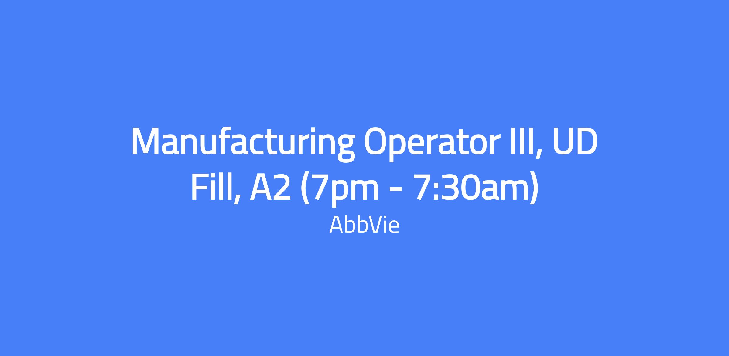 Manufacturing Operator III, UD Fill, A2 (7pm - 7:30am)