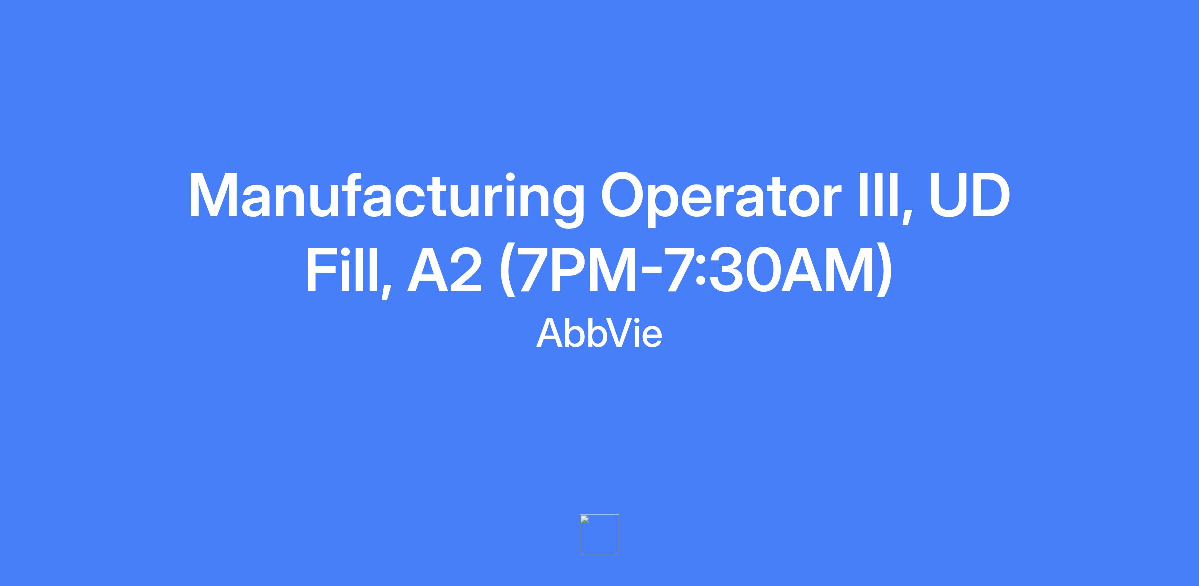 Manufacturing Operator III, UD Fill, A2 (7PM-7:30AM) responsible for production line duties to meet goals while ensuring quality and safety standards. Operates production equipment and completes documentation in accordance with cGMPs and SOPs, monitoring product to maintain quality.