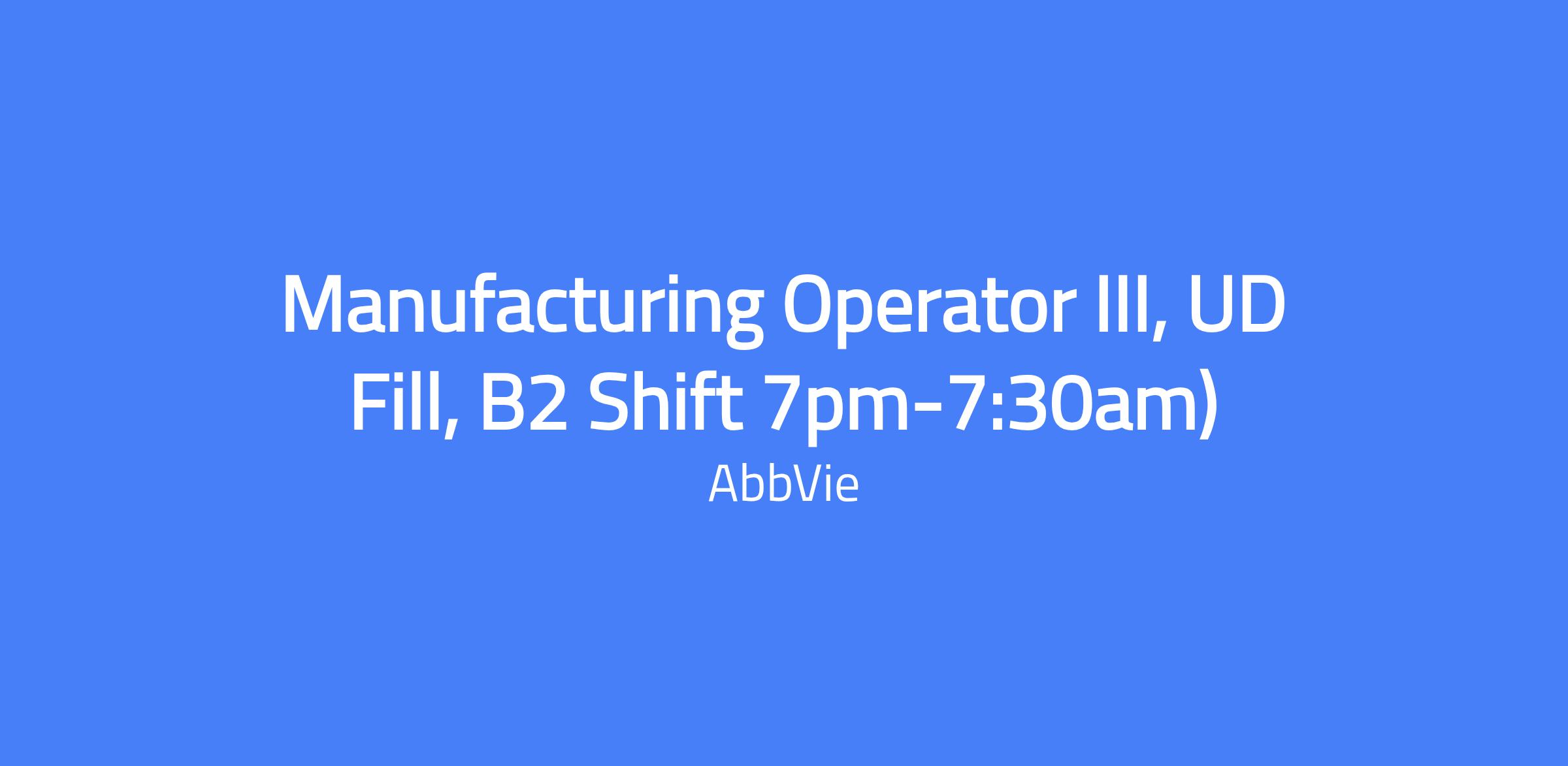 Manufacturing Operator III, UD Fill, B2 Shift 7pm-7:30am)