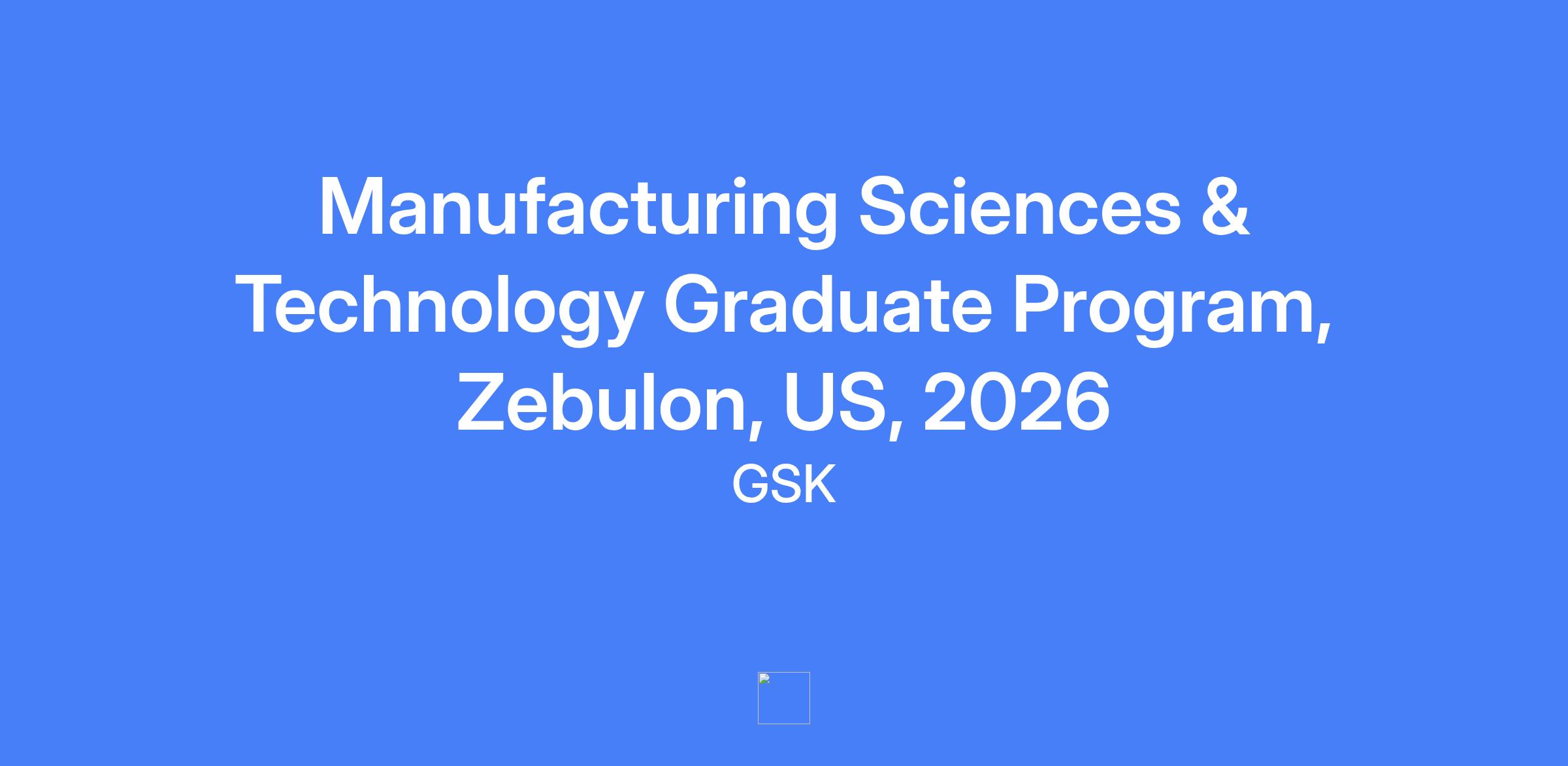 Manufacturing Sciences & Technology Graduate Program, Zebulon, US, 2026. Join a two-year program designed to prepare you for future technical, operational and engineering roles within Global Supply Chain, focusing on manufacturing medicines and vaccines and leveraging digital solutions and smart manufacturing technologies.