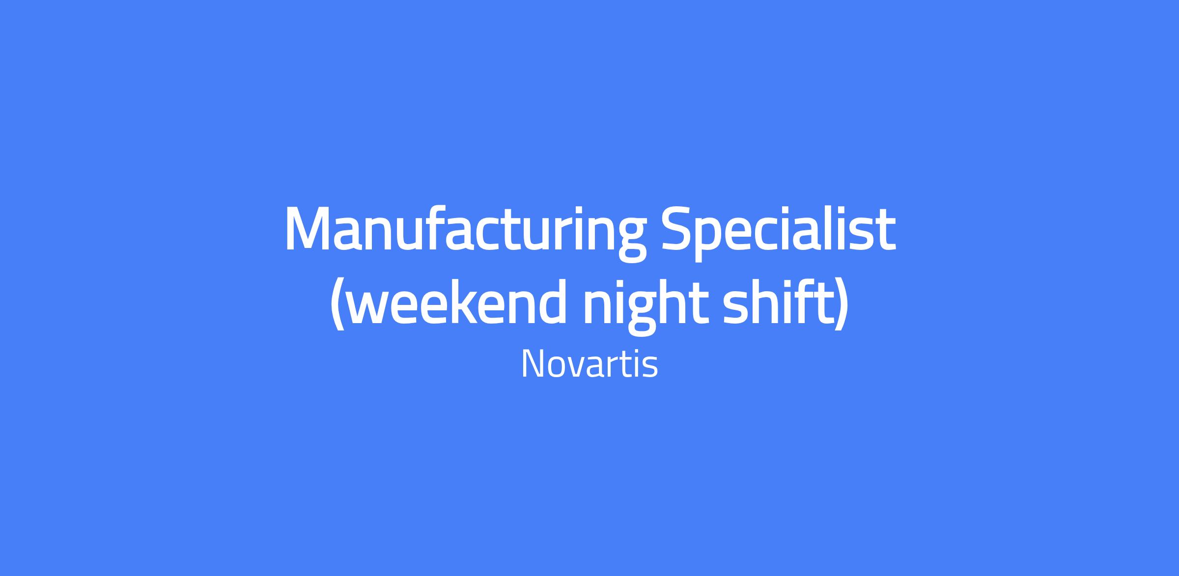 As a Manufacturing Specialist you will provide front line support to manufacturing, working with the production teams to ensure each batch is manufactured safely and in compliance with the batch instructions and quality requirements. You will act as our Subject Matter Expert (SME) for product and process knowledge and will be the first point of contact for product and process related issues. Drives investigations to true root cause, and implementation of corrective and preventive actions. Shift: Weekend Nights - position may involve mandatory overtime as needed.