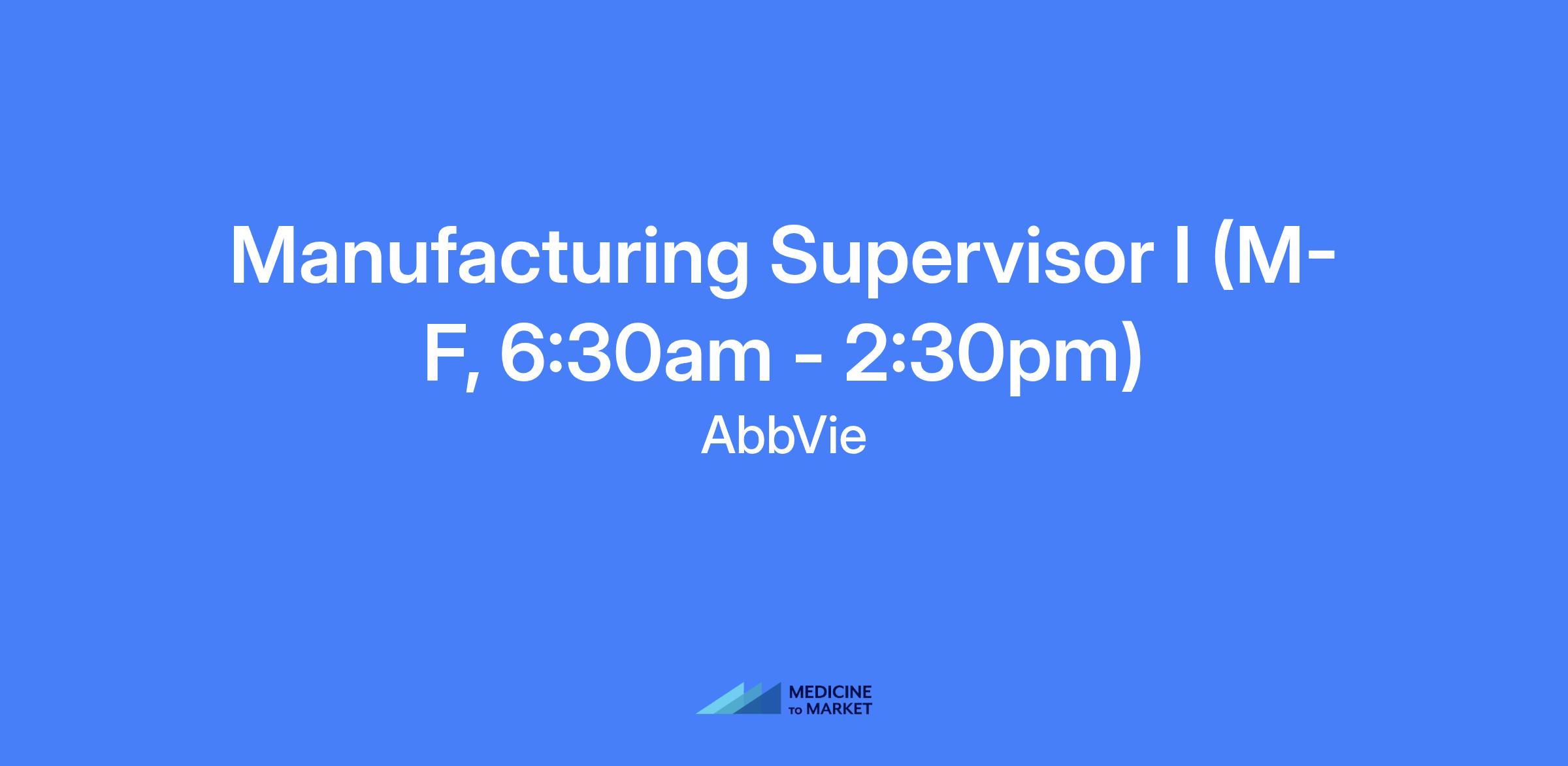 Manufacturing Supervisor I (M-F, 6:30am - 2:30pm). Lead and facilitate safe operations in line with safety, regulatory and operational requirements. Ensure quality of product and services, achieve financial performance including cost reductions, and build a high-performance culture for the team.