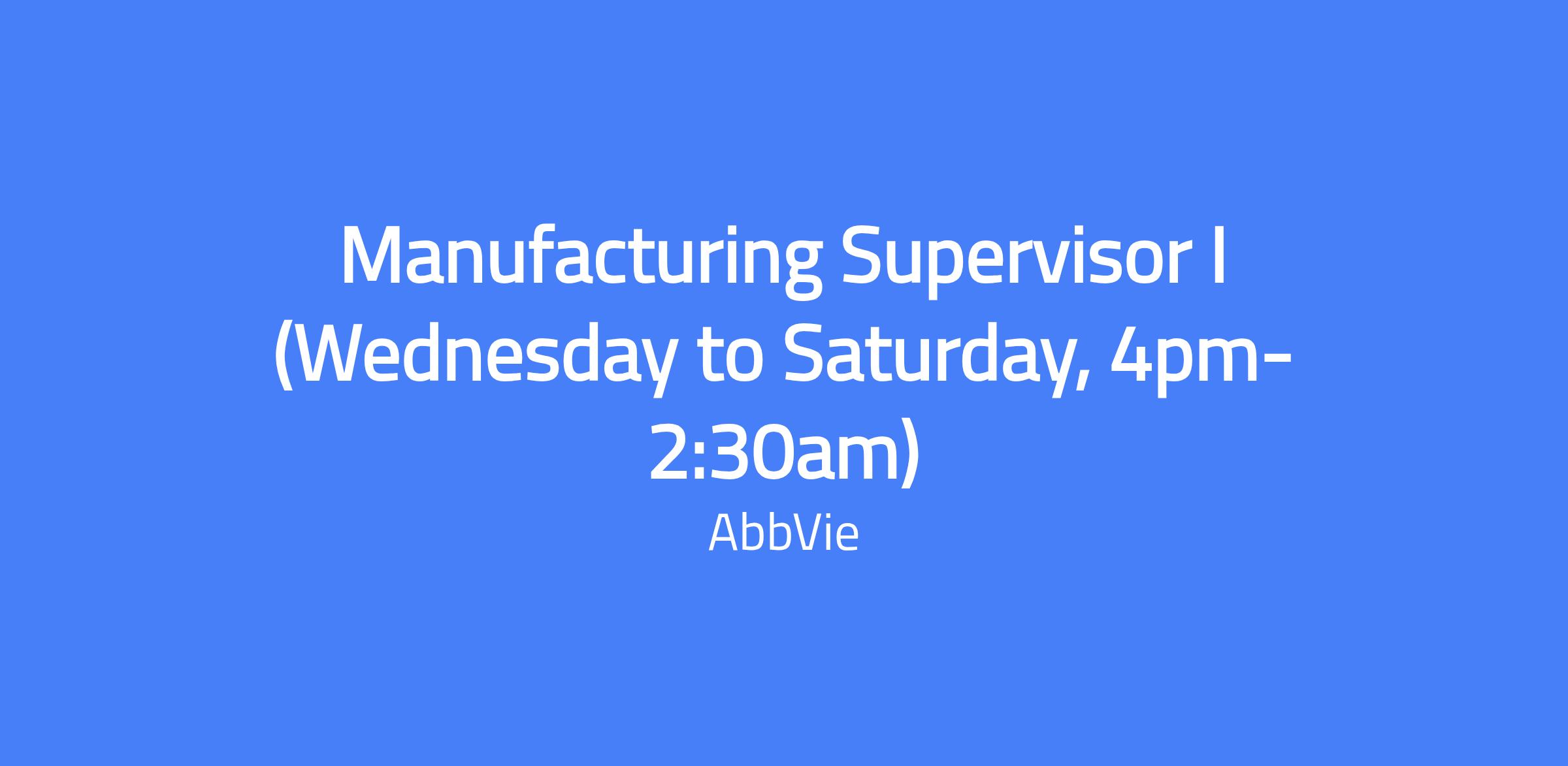 Manufacturing Supervisor I (Wednesday to Saturday, 4pm-2:30am)