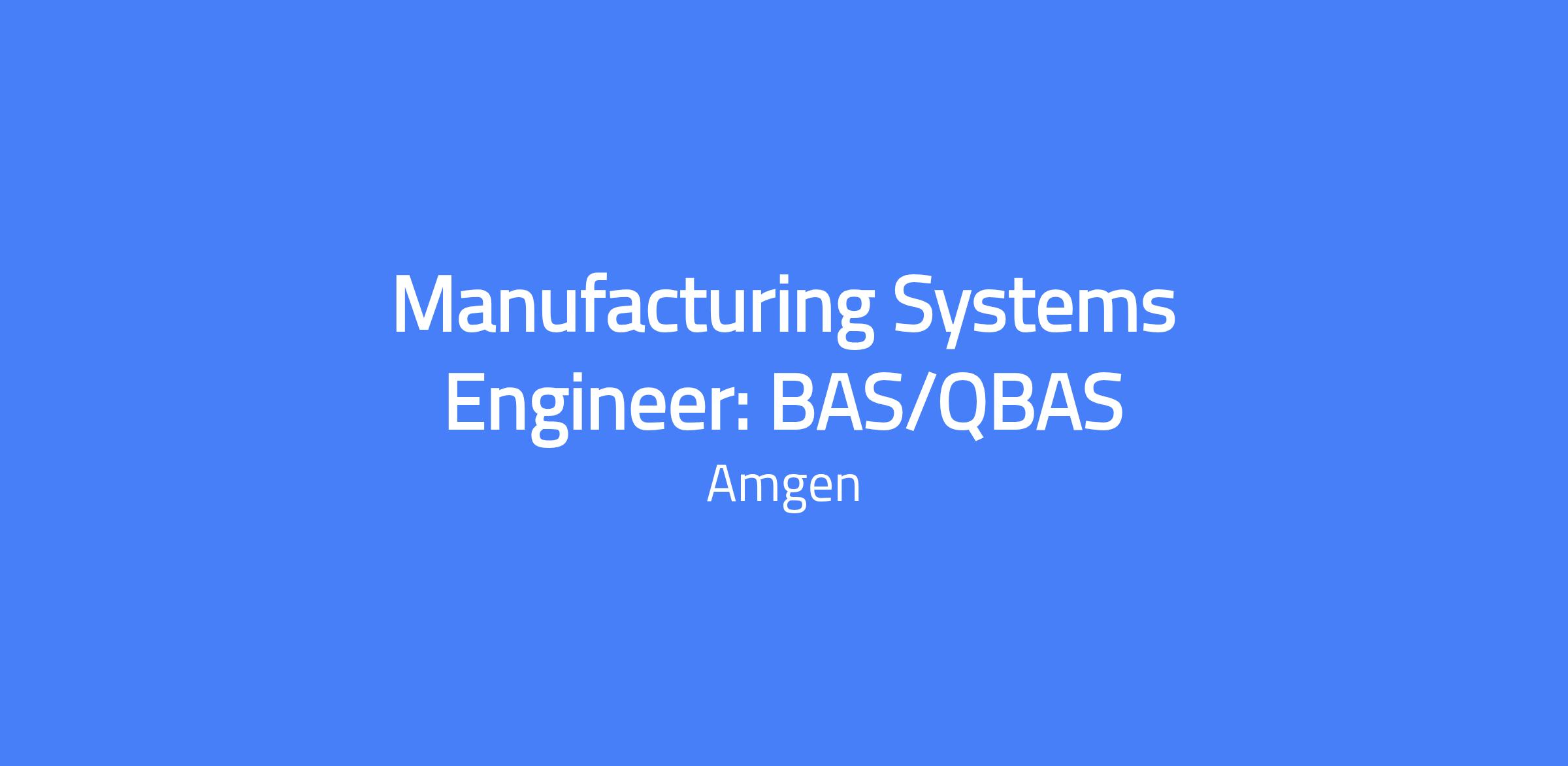 Manufacturing Systems Engineer for BAS/QBAS. You will work with a team of automation engineers to build and maintain automation systems that support GMP Drug Substance Plant Operations, and collaborate with the capital project team to deliver robust automation for the new facility. The role includes commissioning and qualification support, ongoing operational support, and driving automation improvements to enhance safety, reliability, and productivity.