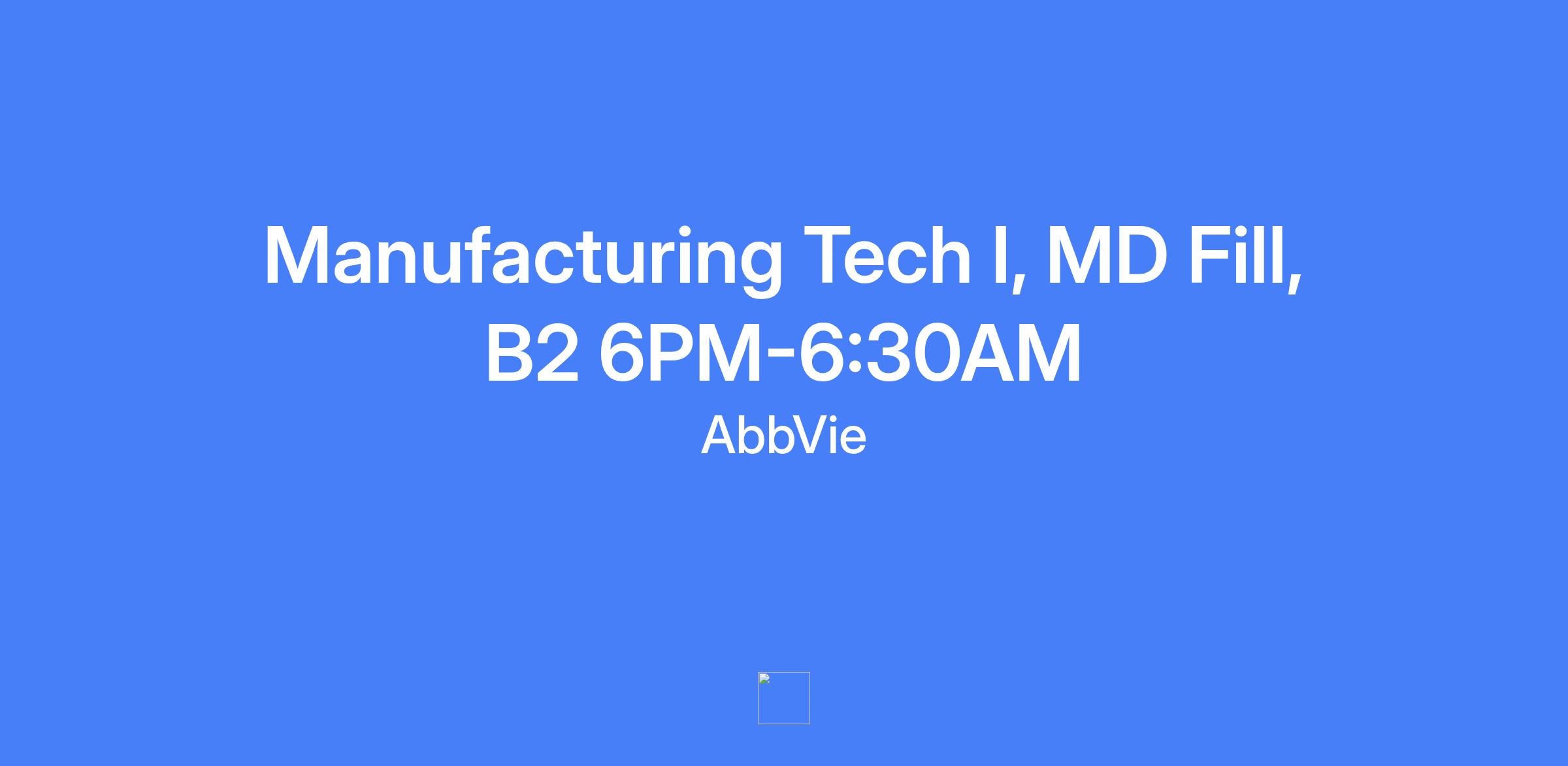 Manufacturing Tech I, MD Fill, B2 Shift (6PM-6:30AM) performs production line duties to meet production goals while adhering to quality and safety standards. Operates production equipment and completes documentation in accordance with cGMPs and department SOPs, ensuring product quality is maintained.