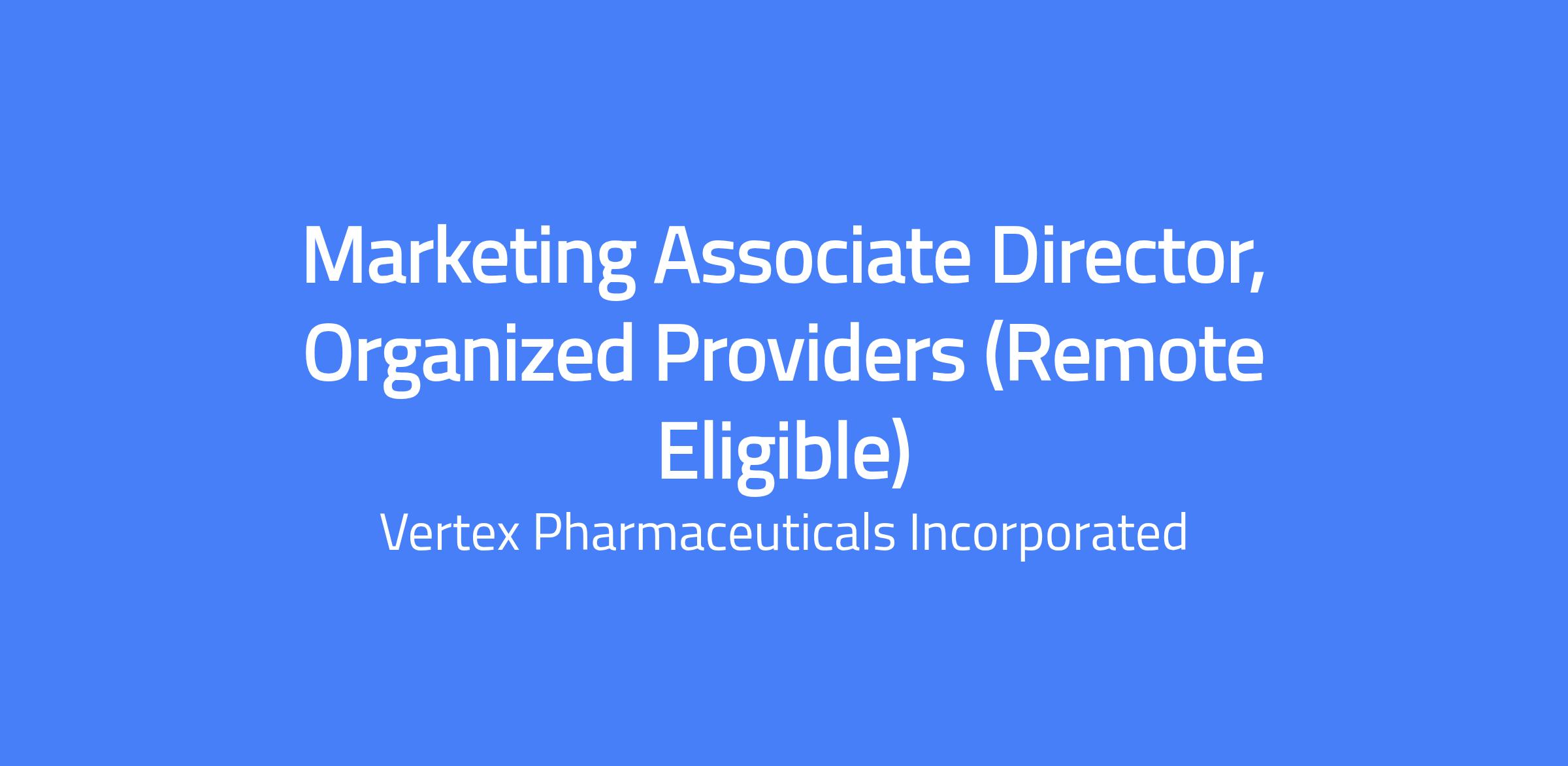 Job Description General Summary: Vertex is seeking a talented individual to join our US Pain Business Unit and support our journey to fundamentally transform pain management in the US. The Marketing Associate Director, Organized Providers, is responsible for the development and execution of key marketing tactics targeting Hospital Group Purchasing Organizations, the Department of Defense, the Department of Veterans Affairs, and additional organized corporate accounts. Vertex recently launched JOURNAVX, an oral, non-opioid medication for the treatment of moderate-to-severe acute pain. Promotional education is critical to the success of JOURNAVX. This role will develop high impact personal and digital promotional content and work closely with colleagues on the health systems marketing team, US market access team, federal accounts team, and GPO field lead. This role will be expected to develop and execute training on the above content to a large field team of ~200 members. This role reports to the Senior Director, Health Systems and Organized Providers. Key Duties and Responsibilities: Drives deep account specific expertise to guide strategy in GPOs, VA, and DoD accounts Develops/adapts content tailored to GPO and federal account customers Collaborates closely with field GPO lead and Federal Account Leads to support promotional efforts with appropriate marketing content Supports Corporate Account Field Leads with insight generation and marketing materials targeting Ambulatory Surgery Centers, Physician Staffing Groups, Dental Service Organizations and Urgent Care Centers. Informs peer-to-peer education content and tactics that are relevant to the GPO and federal channels Collaborates with cross-functional partners within strategic accounts, market access, and marketing to ensure strategic alignment, operational efficiency, and collaborative strategies & tactics where appropriate Collaborates with the health systems agency of record Leverages insights from customers and field teams to improve material effectiveness Travel Requirements: Ability to travel 30% (~6 days a month) Knowledge and Skills: Experience developing communications/tactics in U.S. or global marketing and managing agency efforts Experience with hospital GPO and federal customers (VA/DOD) Experience with institutional and IDN marketing and/or sales Early career experience as a strong individual contributor in a professional work setting Pharmaceutical drug launch experience preferred Demonstrates strong understanding of health information technology, IDN systems, and institutional markets Education and Experience: Bachelor's degree in marketing, business, or scientific degree Typically requires 8 years of experience or the equivalent combination of education and experience Pay Range: $162,800 - $244,200 Disclosure Statement: The range provided is based on what we believe is a reasonable estimate for the base salary pay range for this job at the time of posting. This role is eligible for an annual bonus and annual equity awards. Some roles may also be eligible for overtime pay, in accordance with federal and state requirements. Actual base salary pay will be based on a number of factors, including skills, competencies, experience, and other job-related factors permitted by law. At Vertex, our Total Rewards offerings also include inclusive market-leading benefits to meet our employees wherever they are in their career, financial, family and wellbeing journey while providing flexibility and resources to support their growth and aspirations. From medical, dental and vision benefits to generous paid time off (including a week-long company shutdown in the Summer and the Winter), educational assistance programs including student loan repayment, a generous commuting subsidy, matching charitable donations, 401(k) and so much more. Flex Designation: Remote-Eligible Flex Eligibility Status: In this Remote-Eligible role, you can choose to be designated as: 1. Remote: work remotely five days per week and come into the office on occasion – you’re always welcome on-site; or select 2. Hybrid: work remotely up to two days per week; or select 3. On-Site: work five days per week on-site with ad hoc flexibility. Note: The Flex status for this position is subject to Vertex’s Policy on Flex @ Vertex Program and may be changed at any time. #LI-Remote Company Information Vertex is a global biotechnology company that invests in scientific innovation. Vertex is committed to equal employment opportunity and non-discrimination for all employees and qualified applicants without regard to a person's race, color, sex, gender identity or expression, age, religion, national origin, ancestry, ethnicity, disability, veteran status, genetic information, sexual orientation, marital status, or any characteristic protected under applicable law. Vertex is an E-Verify Employer in the United States. Vertex will make reasonable accommodations for qualified individuals with known disabilities, in accordance with applicable law. Any applicant requiring an accommodation in connection with the hiring process and/or to perform the essential functions of the position for which the applicant has applied should make a request to the recruiter or hiring manager, or contact Talent Acquisition at ApplicationAssistance@vrtx.com Help Us Achieve Our Mission Vertex is a global biotechnology company that invests in scientific innovation to create transformative medicines for people with serious diseases. The company has approved medicines that treat the underlying causes of multiple chronic, life-shortening genetic diseases — cystic fibrosis, sickle cell disease and transfusion-dependent beta thalassemia — and continues to advance clinical and research programs in these diseases. Vertex also has a robust clinical pipeline of investigational therapies across a range of modalities in other serious diseases where it has deep insight into causal human biology, including APOL1-m