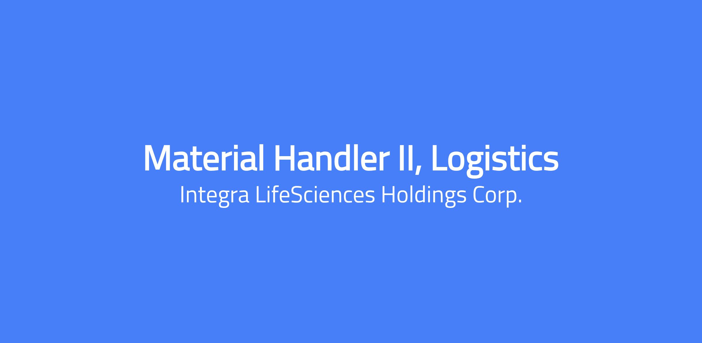 Changing lives. Building Careers. Joining us is a chance to do important work that creates change and shapes the future of healthcare. Thinking differently is what we do best. To us, change equals opportunity. Every day, our colleagues are challenging whatâs possible and making headway to innovate new treatment pathways to advance patient outcomes and set new standards of care. The Materials Handler II, Logistics will perform receiving and shipping activities verifying the accuracy of the quantity, completeness of documents, and condition of shipments. Receives stores, distributes, and issues supplies, equipment and merchandise within the warehouse or receiving area requiring direct contact with materials and products handled. Verifies incoming shipments against Purchase Order and prepares outgoing shipments. Distributes issues and requisitions items, takes, and maintains inventories, as well as keeping related clerical records and files. Participates in the Spill Team Member. ESSENTIAL DUTIES AND RESPONSIBILITIES To perform this job successfully, the individual must be able to perform each essential duty satisfactorily. 1. Reads and compares identifying information of incoming merchandise, and verifies information against bills of lading, invoices, orders, or other records, and processes them to the proper channel effectuating transactions for raw materials and MRO items. 2. Examines incoming shipments for external package damage and shipment parcel completion. Documents shortages. If package is damaged, requests carrier to rectify. When required processes claims directly with the transport company for incomplete or damaged merchandise. 3. Controls production and distribution supplies, getting quotes and places purchase requisitions for replacement of shipping materials and production supplies contacting suppliers either by telephone or mail. 4. Operates electric forklift and pallet jack to move, convey, or transport merchandise from receiving or shipping platform to storage or ship, or delivery vehicle as required. Drives company van to transport products or materials when required. 5. Routes movement of incoming shipments or items from receiving to storage, work area, or the corresponding requisitions. 6. Receives all raw material and merchandise from vendors/suppliers in the receiving area Handles, prepares and submits to the incoming inspection area for raw materials, end users for MRC merchandise or storage area for production supplies. 7. Identifies system assigned lot numbers to all incoming raw materials and prepares a Quarantine label identifying the raw material, prepares a receiving traveler and affixes it with shipment passing materials to incoming inspection. 8. Prepares the required shipping documentation for damaged items dispositional for return to vendor. 9. Interfaces with Materials, Purchasing, and Accounting Department to submit different reports for further processing. 10. Coordinates delivery method of return merchandise or raw materials, shipments of finished goods and sterilization shipments. 11. Reports vendors/suppliersâ performance according to established criteria on a timely basis. 12. Verifies packing slips data for sterilization lots and coordinates transport to and from sterilization contractor. 13. Picks and packs all finished goods shipments. 14. Invoices finished goods shipments and distributes related documents to pertinent areas, processes credits and debits as required. 15. Prepares airway bills and coordinates the pick-ups for all shipments. 16. Prepares mailing of outgoing correspondence and postal pick-up of incoming correspondence. 17. Performs other related duties as requested by the Supervisor. 18. Maintains and distributes optimum levels for inventory for shipping materials and production supplies in order to meet all shipments due dates to avoid production downtime. 19. Inspects material handling equipment for defects and notifies maintenance personnel for repair. 20. Maintains warehouse area well organized and clean in order to avoid accidents or hazardous conditions. 21. Updates open orders as these arrive and maintains receiving documentation properly filed and organized and distributes related documents to user areas. 22. All duties and requirements are essential jobs functions where the employee is a sole contributor. DESIRED MINIMUM QUALIFICATIONS High School graduate. Previous experience in similar position preferred. Knowledge of warehouse related functions in a regulated environment. Ability to prepare documentation and reports. Works with a computer system to input data. Office, Oracle Ability to read and understand English. Driverâs license on heavy vehicles category 8 or 9, forklift experience preferred. Bilingual preferred. Self-starter, ability to work independently with minimum supervision. Salary Pay Range: $11.06 - $15.48 USD Hourly Our salary ranges are determined by role, level, and location. Individual pay is determined by several factors including job-related skills, experience, and relevant education or training. In addition to base pay, employees may be eligible for bonus, commission, equity or other variable compensation. Your recruiter can share more about the specific salary range for your preferred location during the hiring process. Additional Description for Pay Transparency: Subject to the terms of their respective plans, employees and/or eligible dependents are eligible to participate in the following Company sponsored employee benefit programs: medical, dental, vision, life insurance, short- and long-term disability, business accident insurance, and group legal insurance, and savings plan (401(k)). Subject to the terms of their respective policies and date of hire, Employees are eligible for the following https://jobs.integralife.com/total-rewards/ Integra LifeSciences is an equal opportunity employer, and is committed to providing equal employment opportunities to all qualified applicants and employees reg