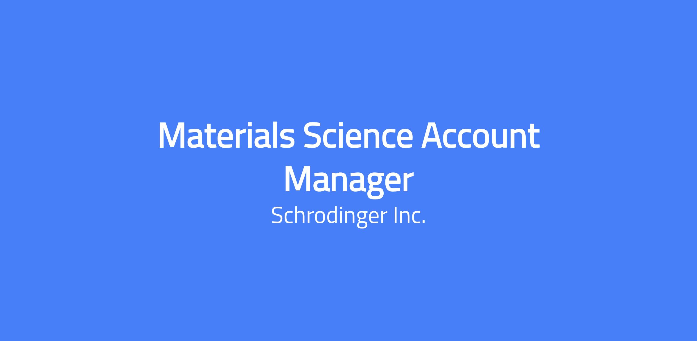 Schrödinger, the leading software and service provider for atomic-scale modeling and physics-based chemical simulations, seeks an Account Manager who will be responsible for establishing our materials science solutions in Europe.