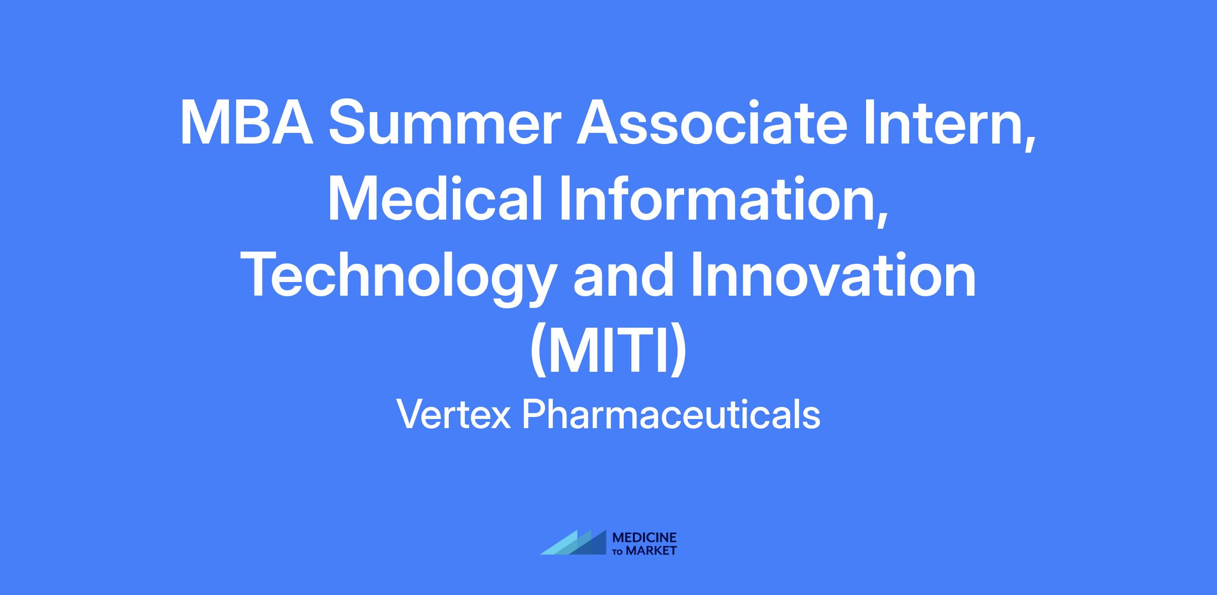 MBA Summer Associate Intern, Medical Information, Technology and Innovation (MITI) supports the transformation and advancement of VertexβΓΓ΄s Medical Information operations through systems, processes, and AI-driven solutions. The role combines operational expertise, digital innovation, and change leadership to reimagine how Medical Information operates globally.