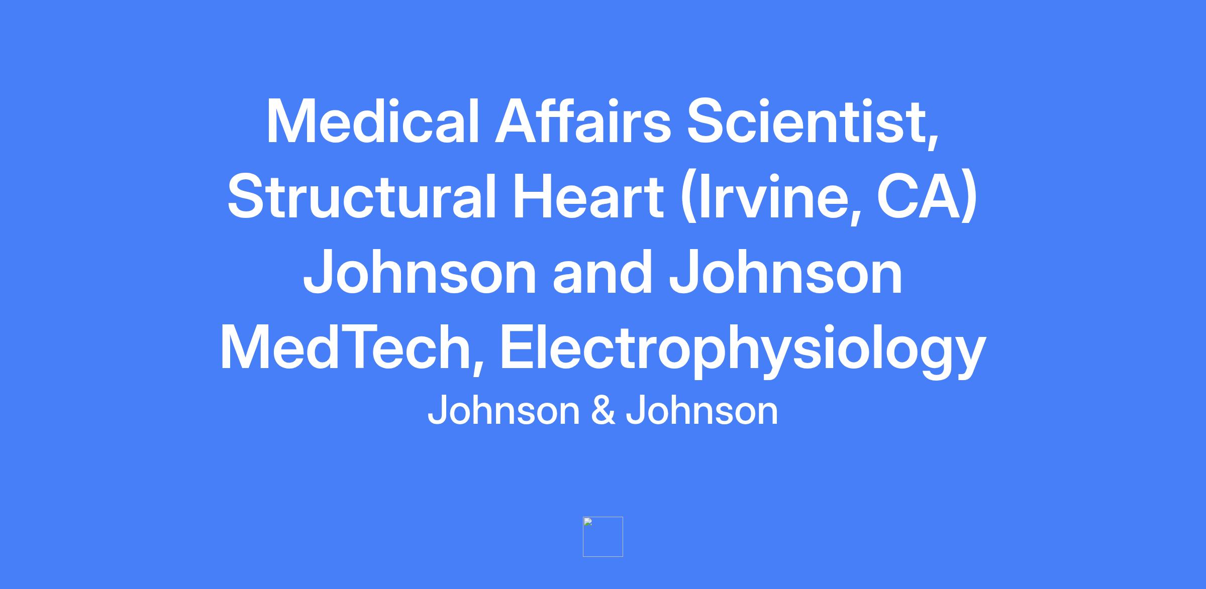 Medical Affairs Scientist, Structural Heart position in Irvine, CA with Johnson & Johnson MedTech Electrophysiology. Focused on providing literature-based insights and supporting clinical trials and product evidentiary needs for safety and effectiveness, collaborating across R&D, marketing, and clinical affairs to address clinical and technology gaps.