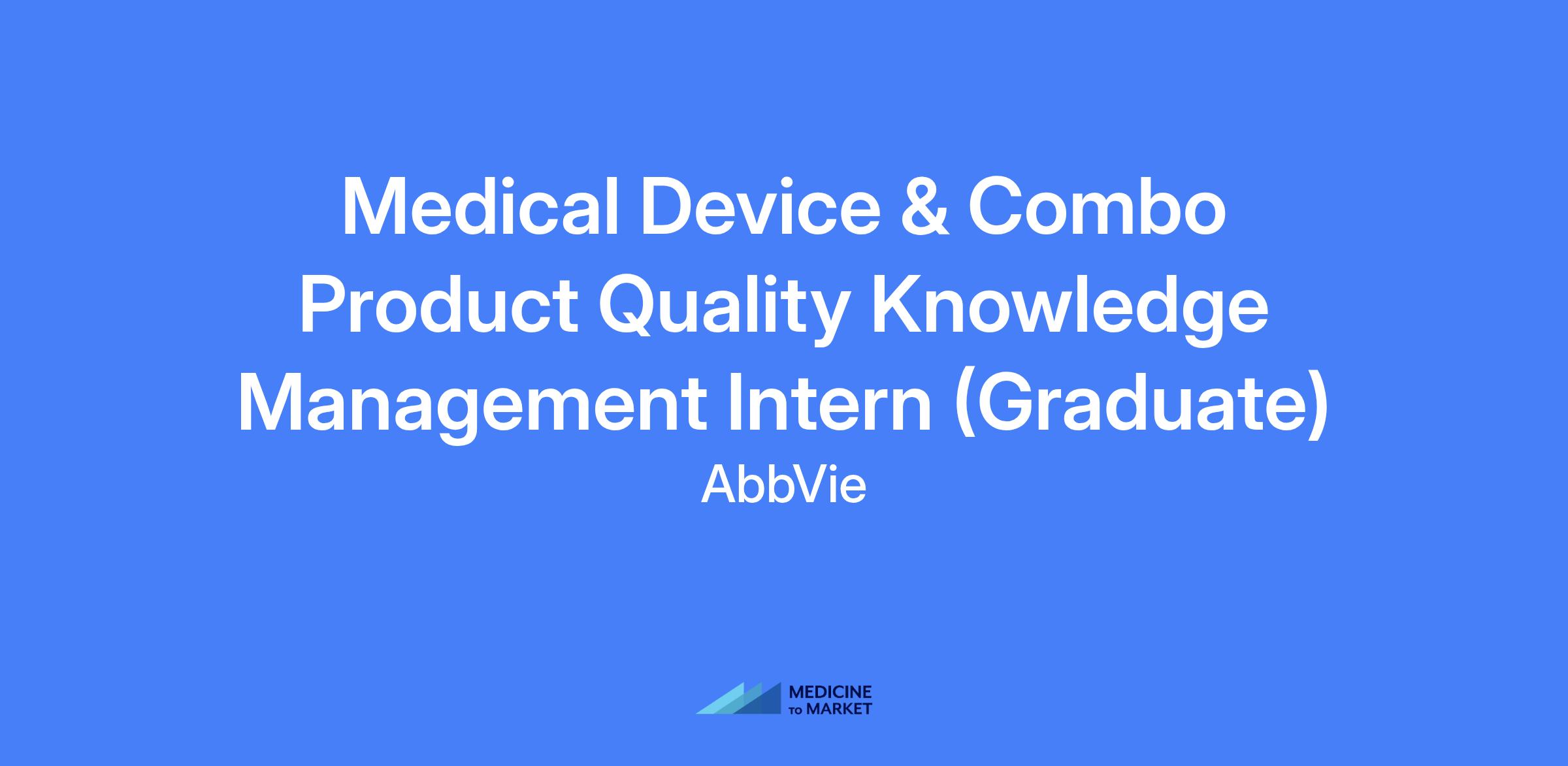 Medical Device & Combo Product Quality Knowledge Management Intern (Graduate) at AbbVie. Support the MDCP RDQA organization, collaborating with R&D, Operations, Regulatory Affairs, and Medical Safety to develop and launch new AbbVie medical device products to patients worldwide. Learn about R&D QA quality systems in a regulated environment and lead efforts to define the best tool and process for collecting and organizing emerging regulations, guidance, enforcement actions, and decisions for consistent application across the organization.