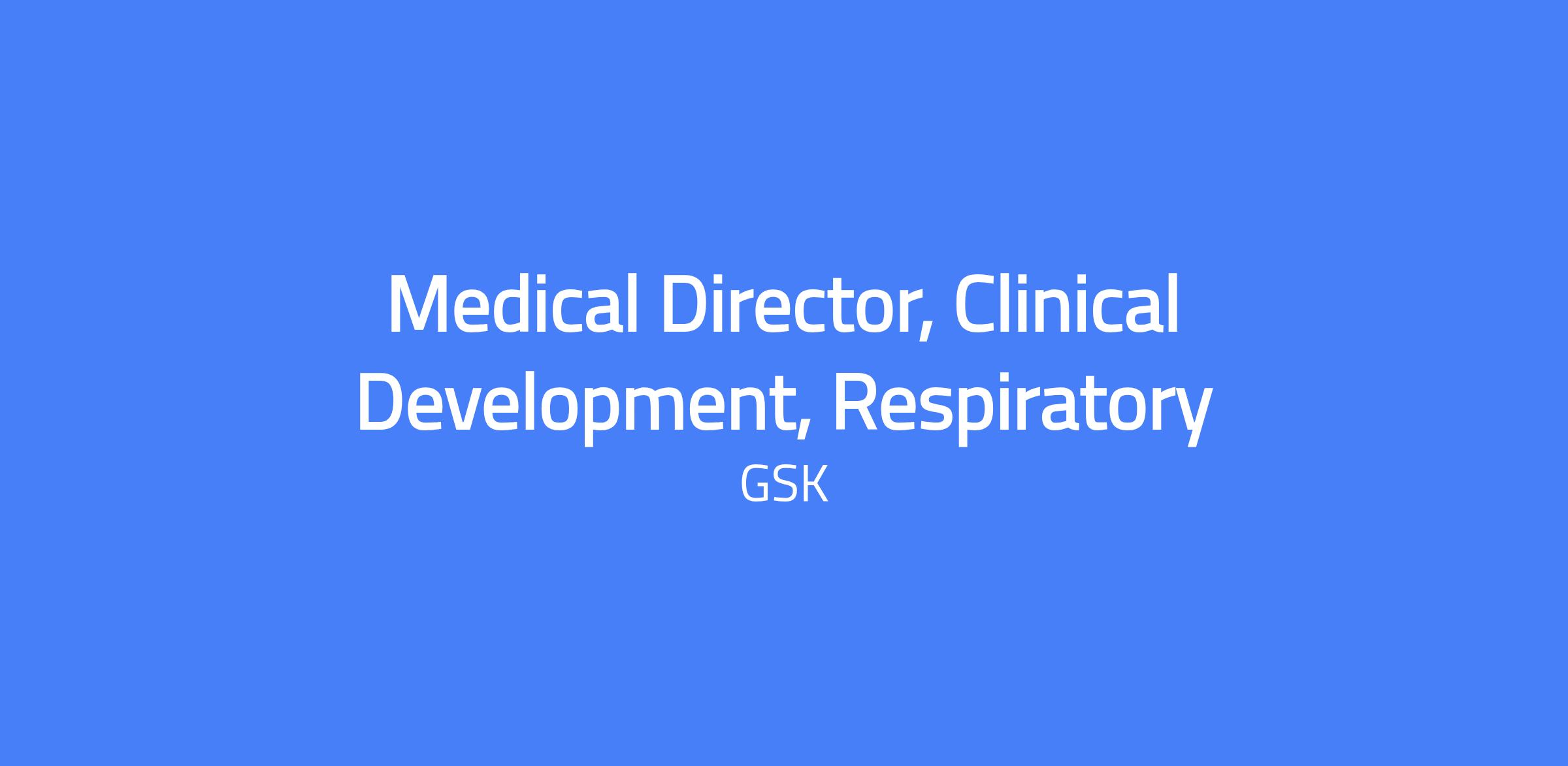 Medical Director, Clinical Development, Respiratory (on-site: minimum two days/week at a GSK US (PA or MA) or UK (Stevenage or London HQ) site)