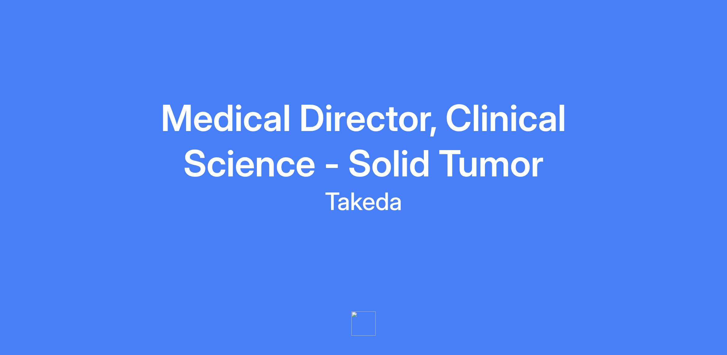 Medical Director, Clinical Science - Solid Tumor located in Cambridge. Role focused on leading global clinical development strategy for assigned Takeda pipeline compounds, integrating medical, scientific, regulatory and commercial considerations to drive regulatory approvals across regions.