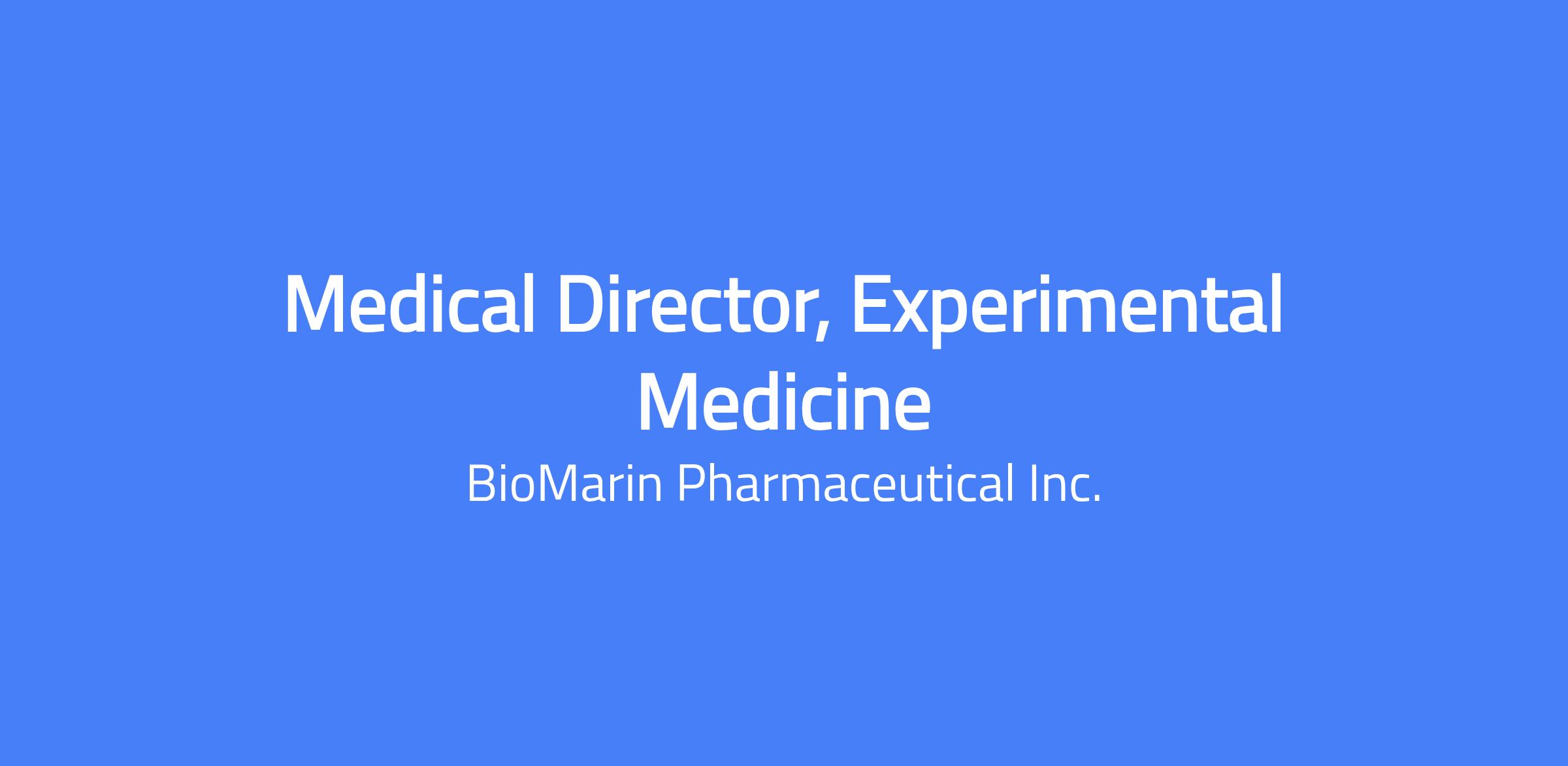Fully remote role, US-based candidates only. BioMarinโs Experimental Medicine team is seeking a physician-scientist to serve as a key matrixed clinical leader focused on the preclinical planning, execution, and design and execution of highly informative first-in-human clinical experiments. Leveraging deep experience in biomarkers and translational clinical research, the Medical Director will partner with Preclinical Pharmacology, Biology, Clinical Pharmacology, Preclinical Safety, Clinical Safety, Regulatory and Clinical Operations to ensure that BioMarin assets are optimally positioned at the time of IND filing to inform a well-designed clinical strategy. Clinical Development plans will be designed to gain maximal insights during initial clinical experiences with new therapeutic agents. The Medical Director will have widespread impacts on the BioMarin early clinical pipeline. Key contributions will include informing preclinical data requirements prior to IND, delivery of initial clinical development plans, preIND and IND documents, and well-designed clinical trial protocols and supportive documents. In addition, this role will contribute to clinical assessments of new project opportunities (both internal projects and supporting business development activities).