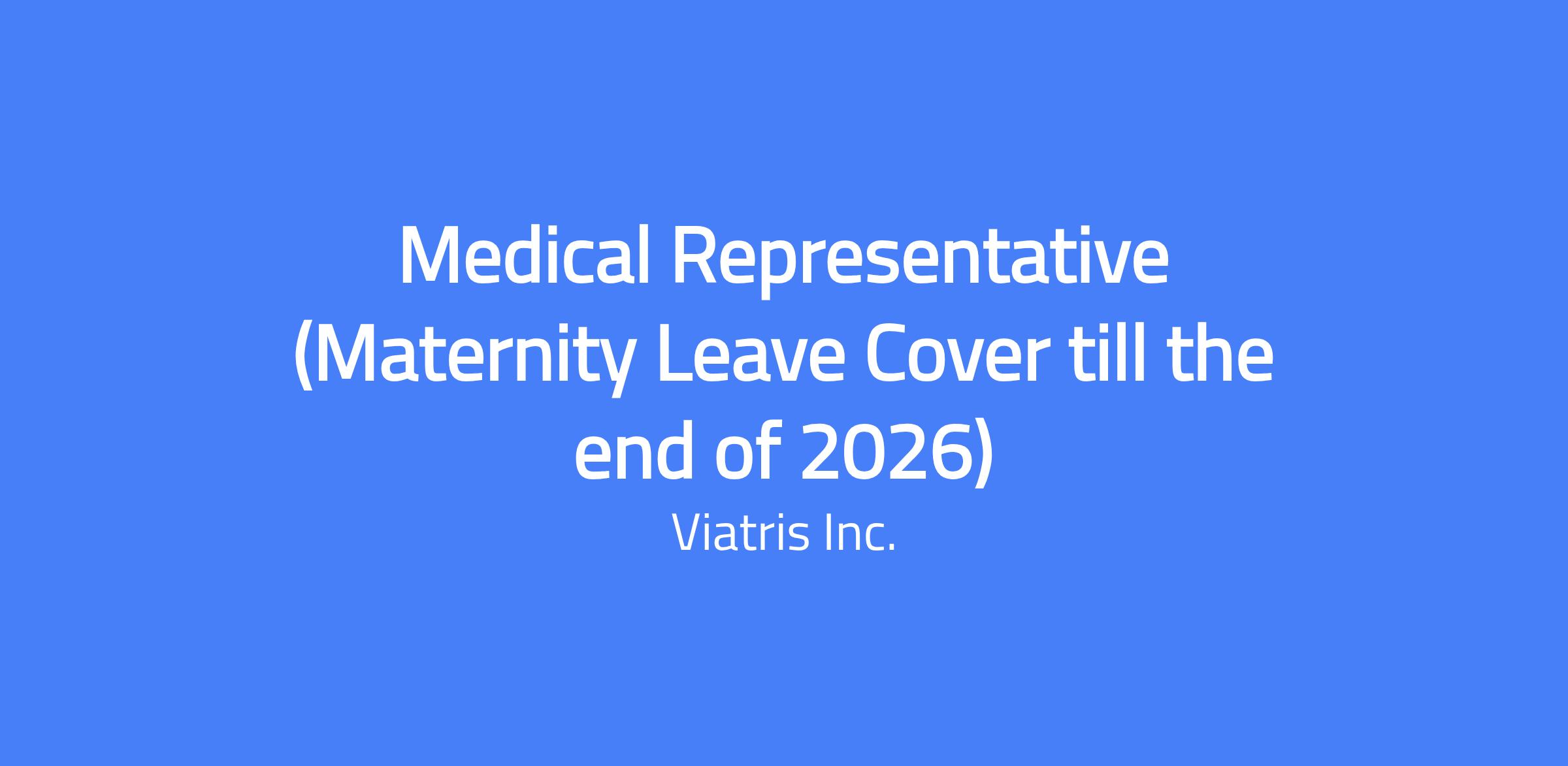 Medical Representative (Maternity Leave Cover till the end of 2026)