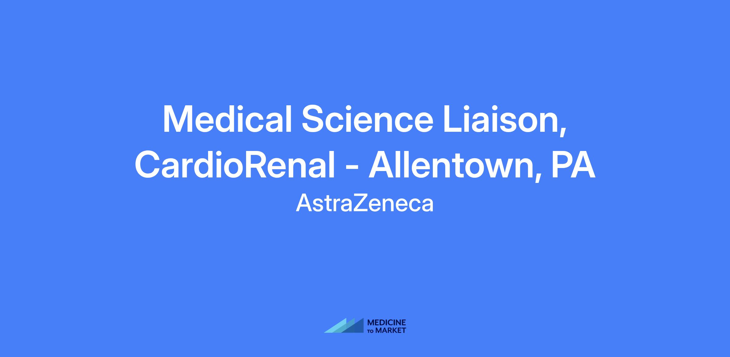 Medical Science Liaison, CardioRenal - Allentown, PA. CardioRenal Medical Science Liaison is a field-based professional with scientific, clinical and therapeutic area expertise responsible for providing medical and scientific support for Cardiorenal marketed products, new indications for current products, and compounds in development. You will engage in scientific exchange with targeted KOLs, KDMs, and HCPs consistent with objectives, identify key customers, and develop peer-level relationships to advance therapeutic goals and clinical development activities.