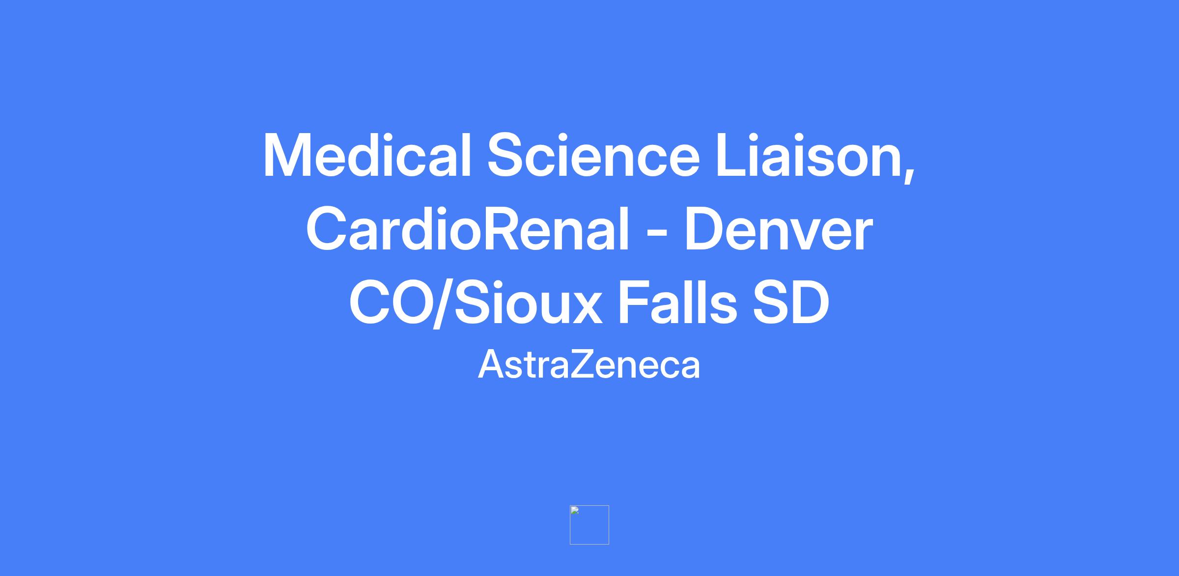 Medical Science Liaison, CardioRenal - Denver CO/Sioux Falls SD.