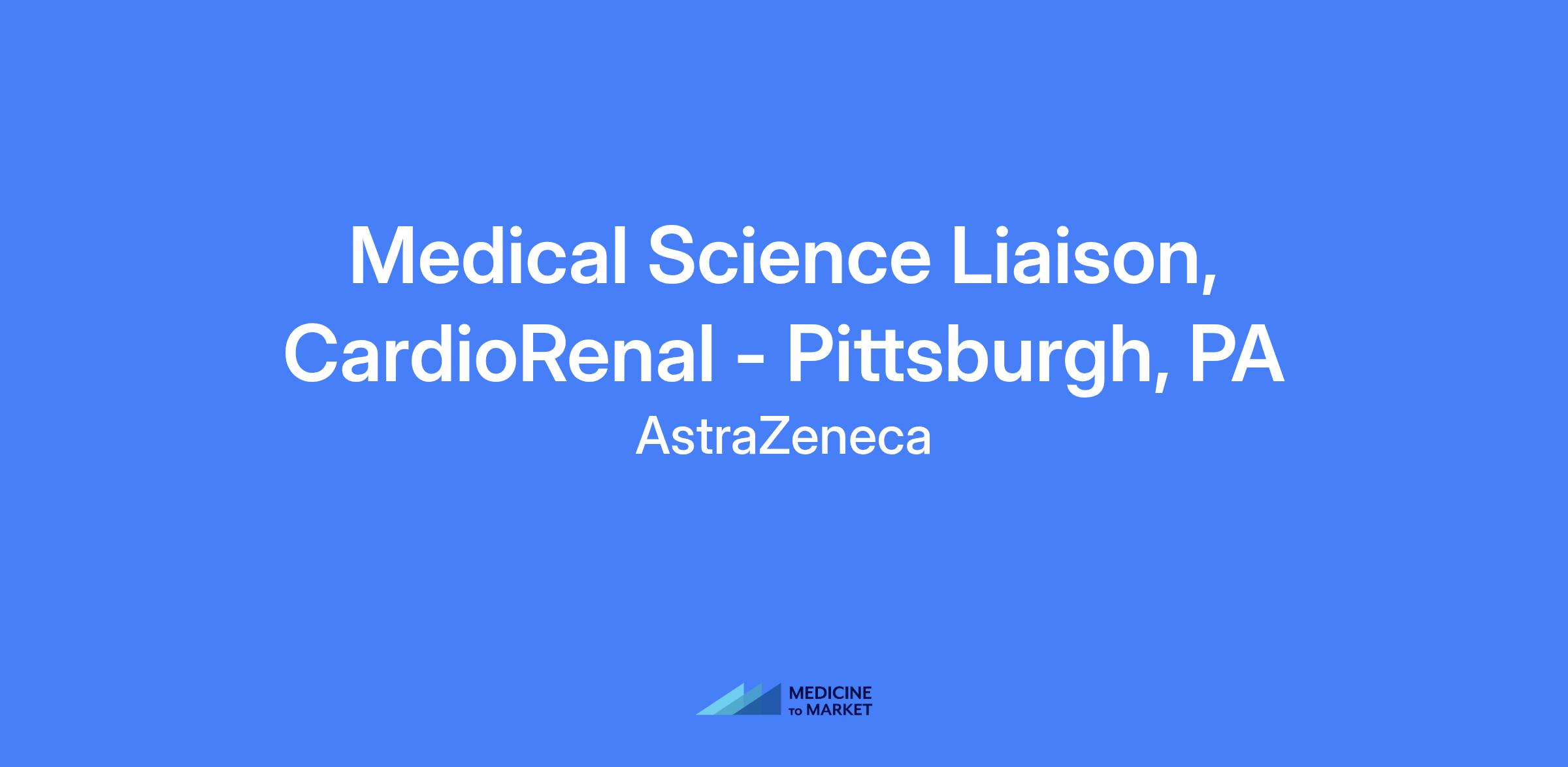 Medical Science Liaison, CardioRenal - Pittsburgh, PA. The role focuses on providing medical and scientific support for Cardiorenal products, engaging with KOLs, KDMs, and HCPs, and driving practice change to improve patient outcomes within the CVR therapeutic area.