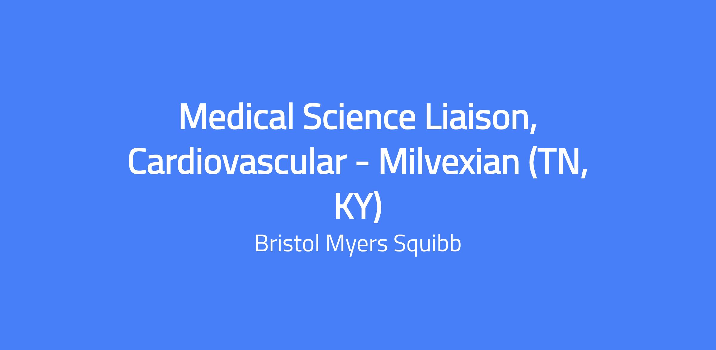 Position: Medical Science Liaison (MSL), Cardiovascular – Milvexian (Field: TN, KY)