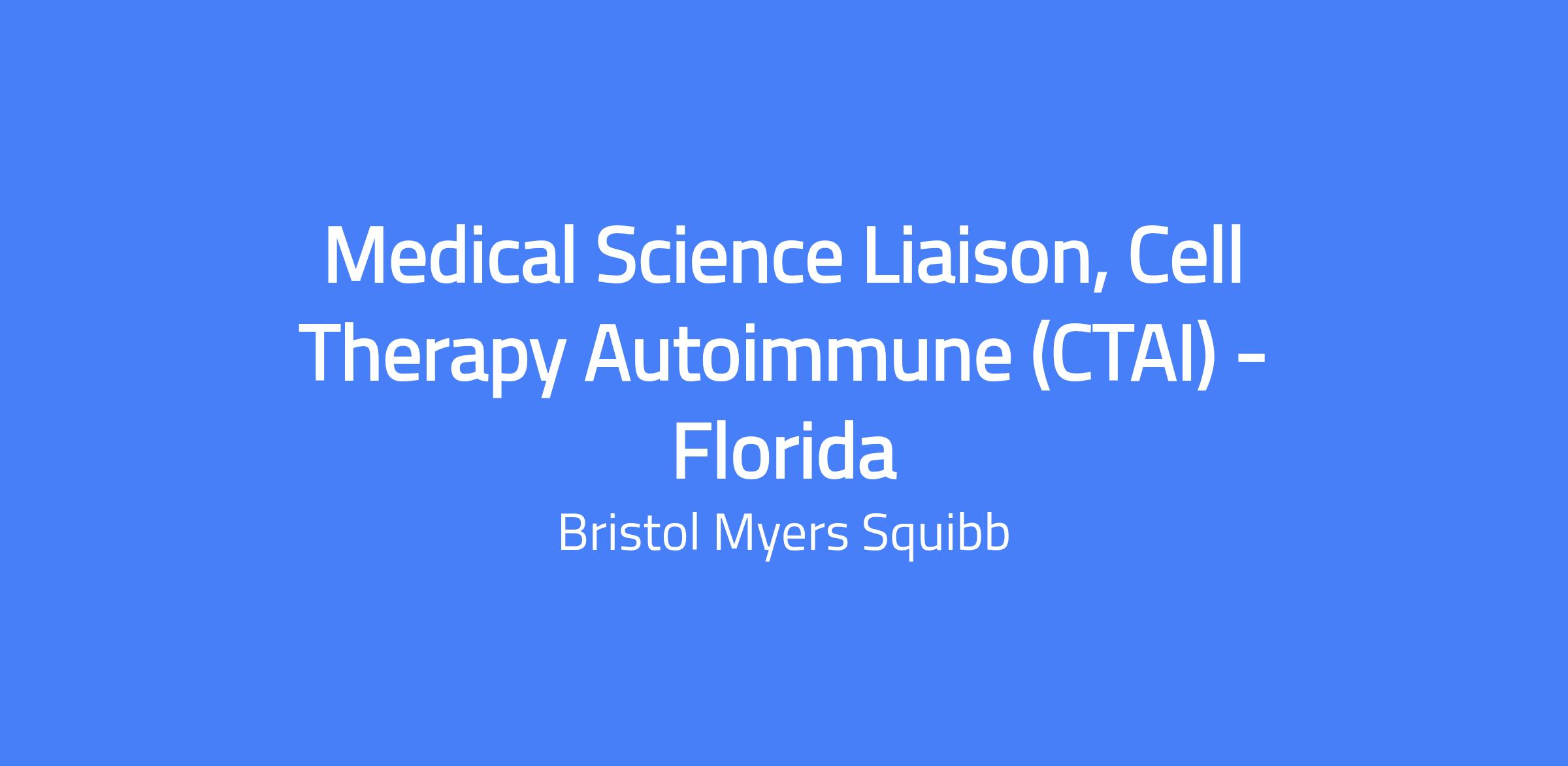 - Partner with other BMS MSL teams to achieve CTAI objectives and goals with rheumatologists and hematologists