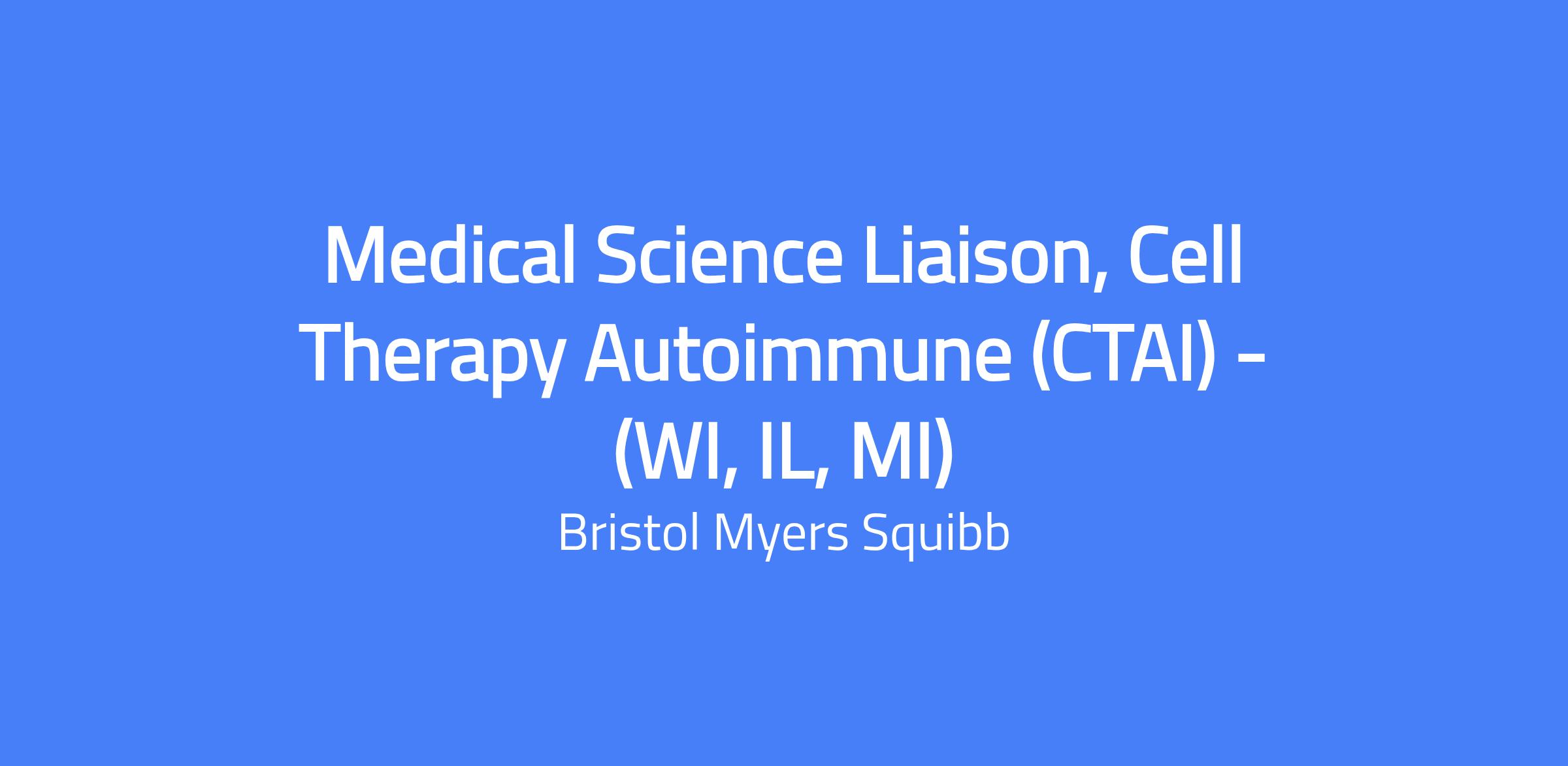 Medical Science Liaison (MSL), Cell Therapy Autoimmune (CTAI) — Territory: WI, IL, MI