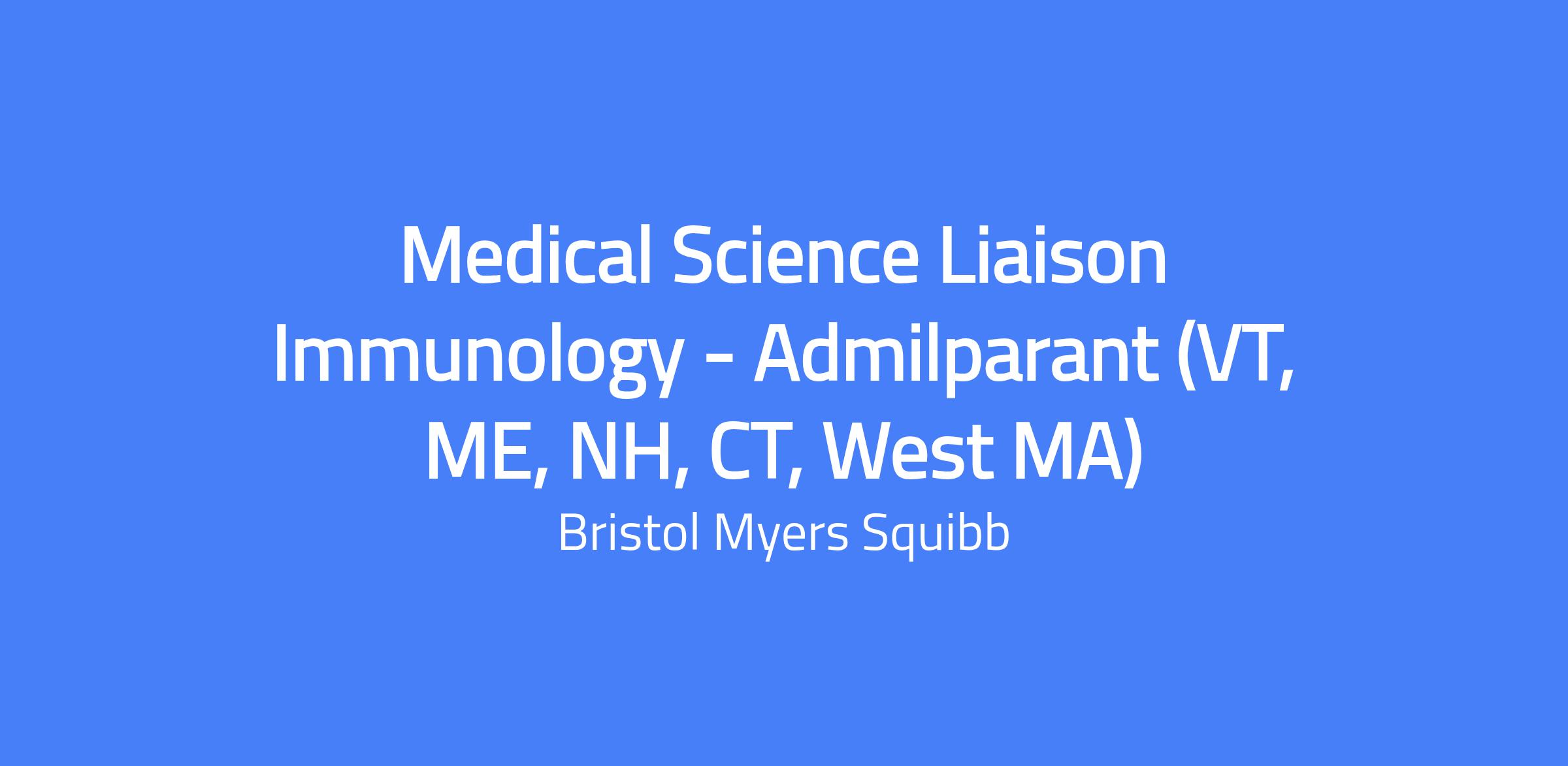 Position: Medical Science Liaison, Immunology (Field - VT, ME, NH, CT, West MA)