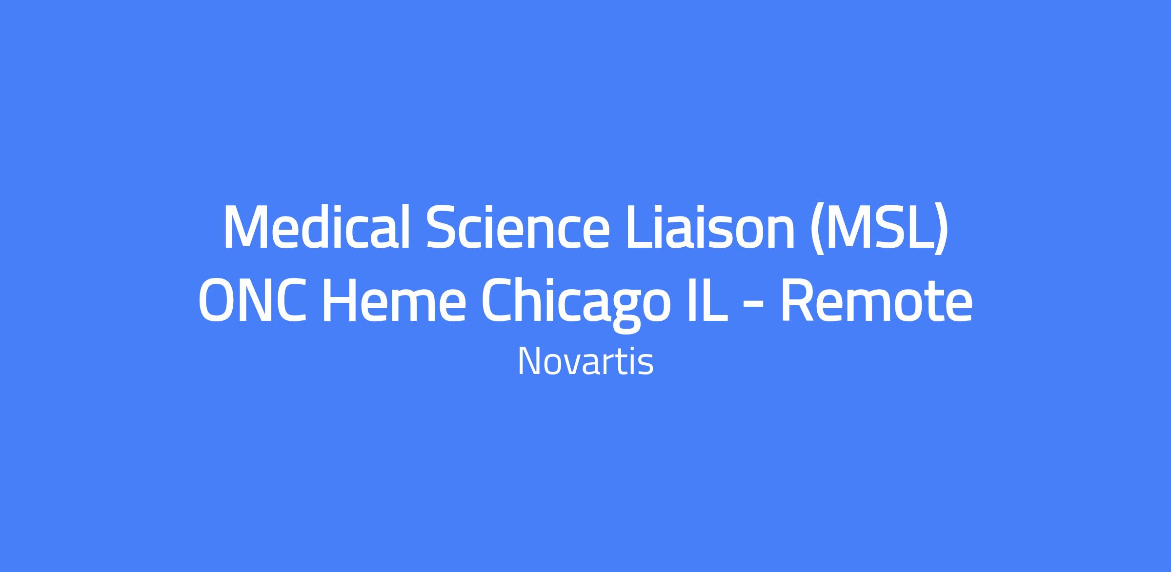 The Medical Science Liaison (MSL) is a field-based, customer-facing medical and scientific role. The MSLโs objective is to advance clinical practice within the assigned territory to improve patient outcomes. The MSL demonstrates deep therapeutic expertise, understands the territory and market influences, engages scientifically with healthcare providers and medical experts, and manages and develops the territory while executing activities in alignment with the medical strategy and applicable compliance policies. The MSL informs and shapes medical strategy by collecting impactful insights and understanding their potential strategic impact. This territory covers Illinois; the preferred location is the Chicago metropolitan area. Candidate must reside within 50 miles of the territory border; relocation is not available.
