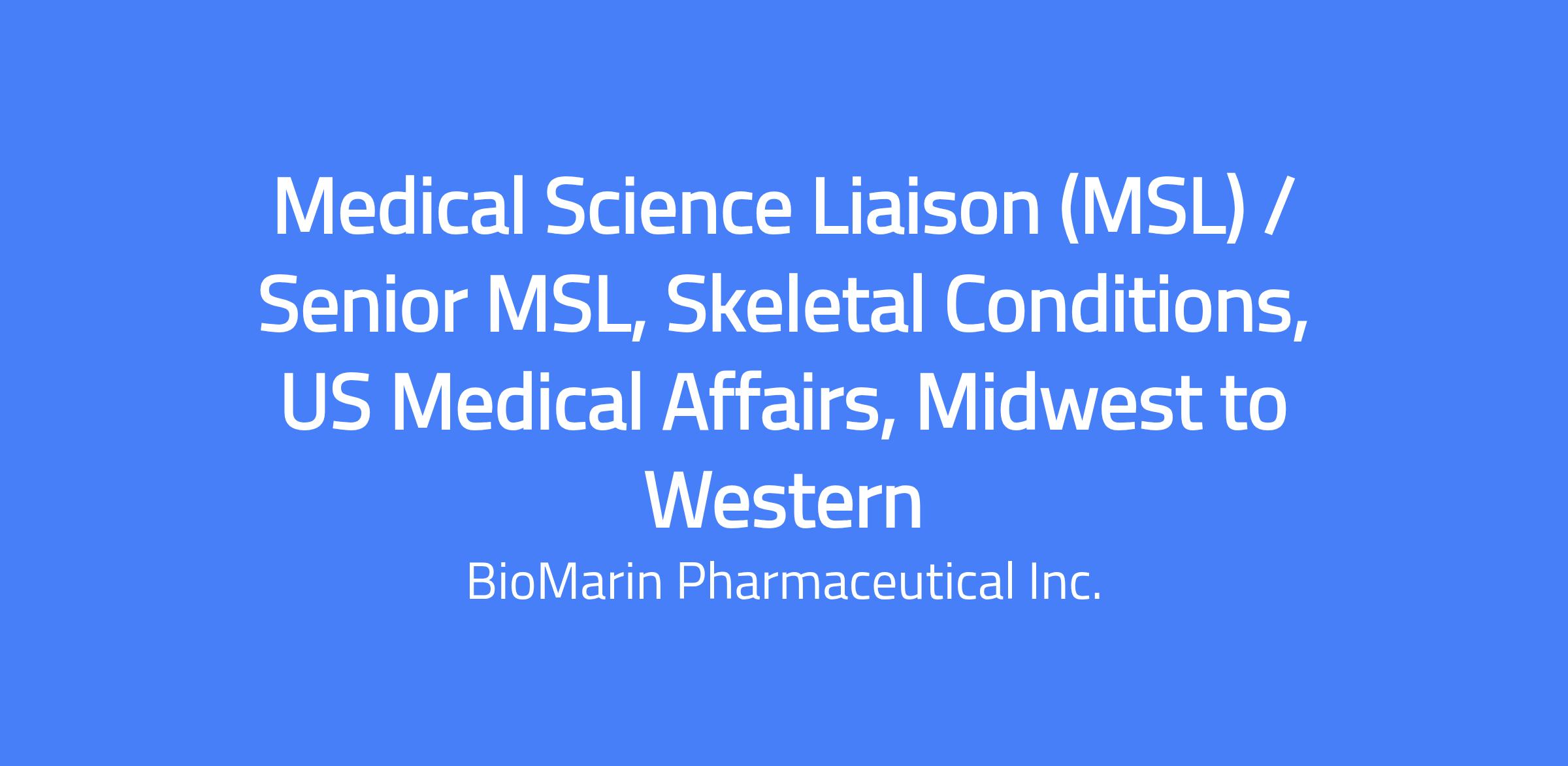 The Skeletal Conditions Medical Science Liaison (MSL) / Senior MSL is a regional field-based role that supports BioMarin's scientific and business objectives by cultivating academic and clinical thought leaders locally, regionally, and nationally. MSLs are the primary scientific communicators of BioMarin science to healthcare providers and other key medical stakeholders, serving as peer experts in their therapeutic area. In this role you will identify clinical and post-marketing study investigators, provide actionable insights to internal teams, and support Investigator Research proposals; travel to cover Midwest to Western territories is required.
