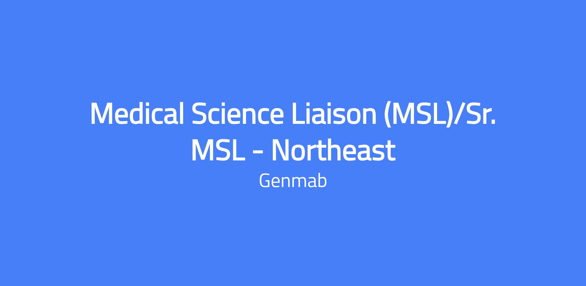 The Medical Science Liaison (MSL/Sr. MSL) for US Medical Affairs Solid Tumor Head & Neck Cancers will be field-based, reporting to the Regional Director MSLs. This role focuses on developing and strengthening professional relationships with medical thought leaders to support Genmab-approved products and products in clinical development. The MSL/Sr. MSL provides scientific and clinical information through balanced scientific exchange and supports product launch excellence, executing field medical activities in collaboration with cross-functional teams to deliver a differentiated customer experience and optimal patient outcomes. Travel approximately 50% within the Northeast region (ME, VT, NH, MA, RI, CT, Eastern NY).