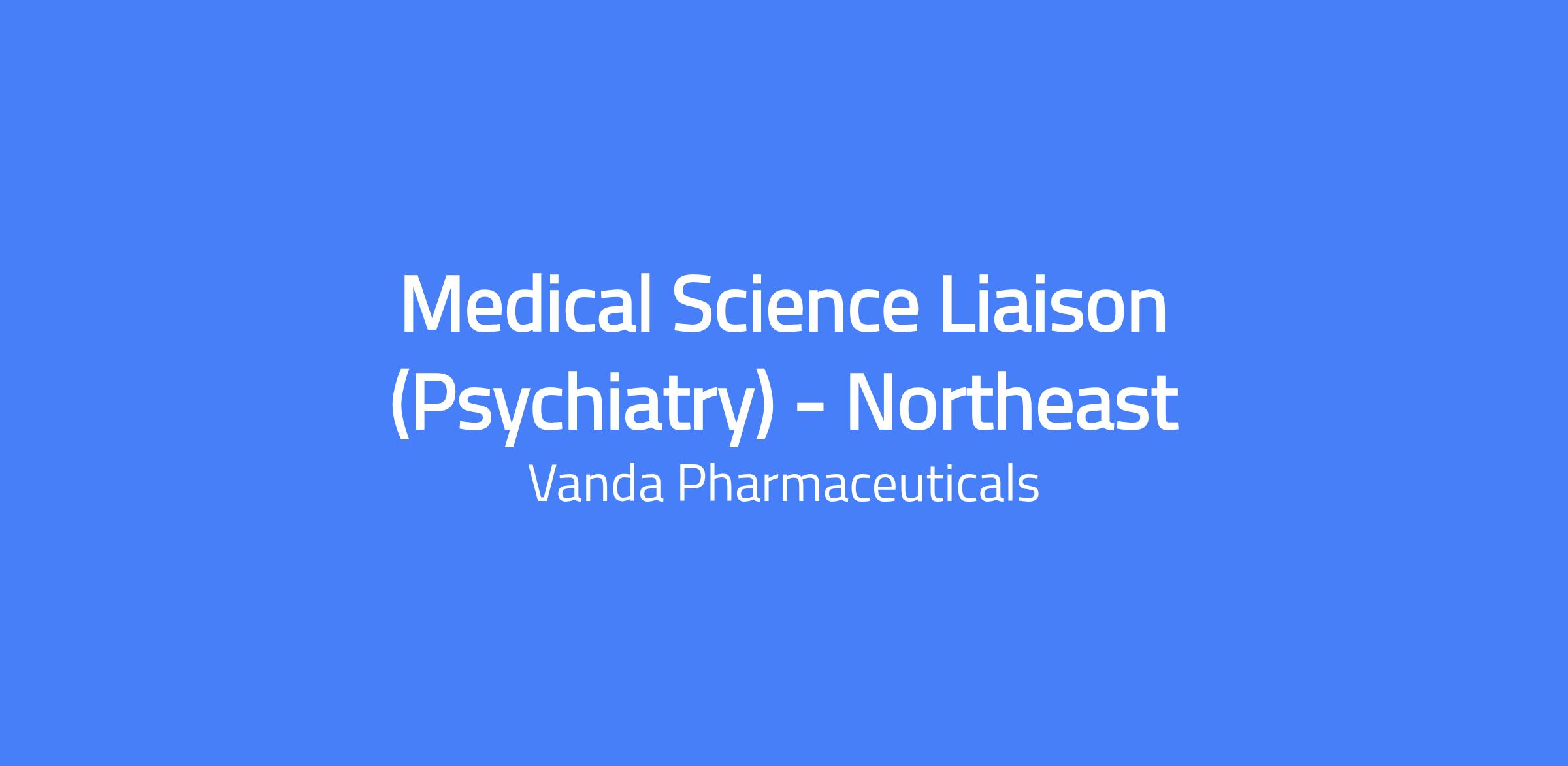Medical Science Liaison (Psychiatry) – Northeast. The role involves engaging in scientific exchange with expert healthcare professionals as part of the Medical Affairs team, communicating scientific concepts effectively to diverse audiences, and contributing to medical information and inter-departmental initiatives.