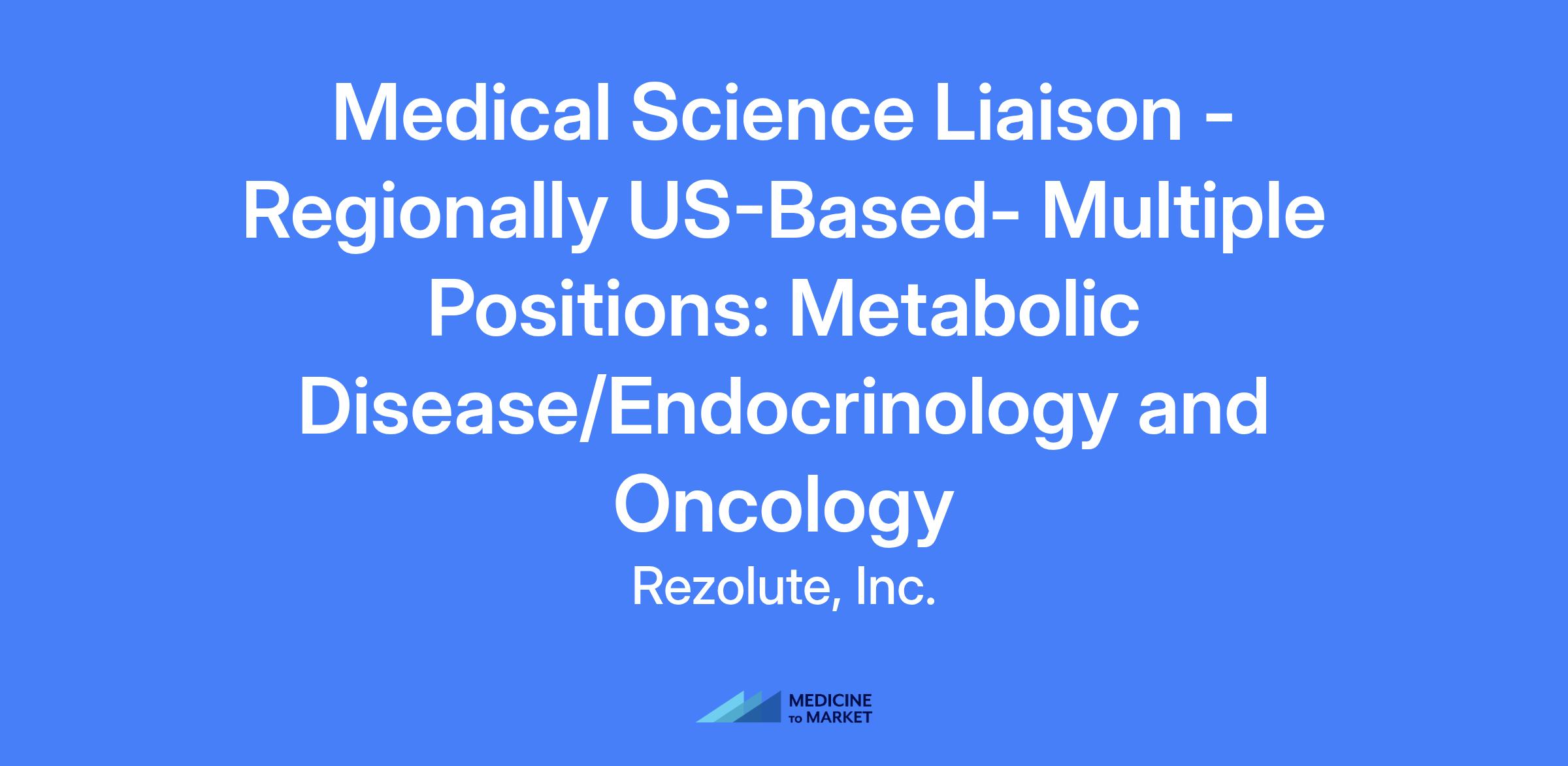 Medical Science Liaison (MSL) responsible for developing and enhancing professional relationships with medical thought leaders within metabolic and oncologic spaces. Provides medical information through scientific exchange and clinical/scientific support for Rezolute and the Medical Affairs department, interacting with global thought leaders and academic centers of excellence.