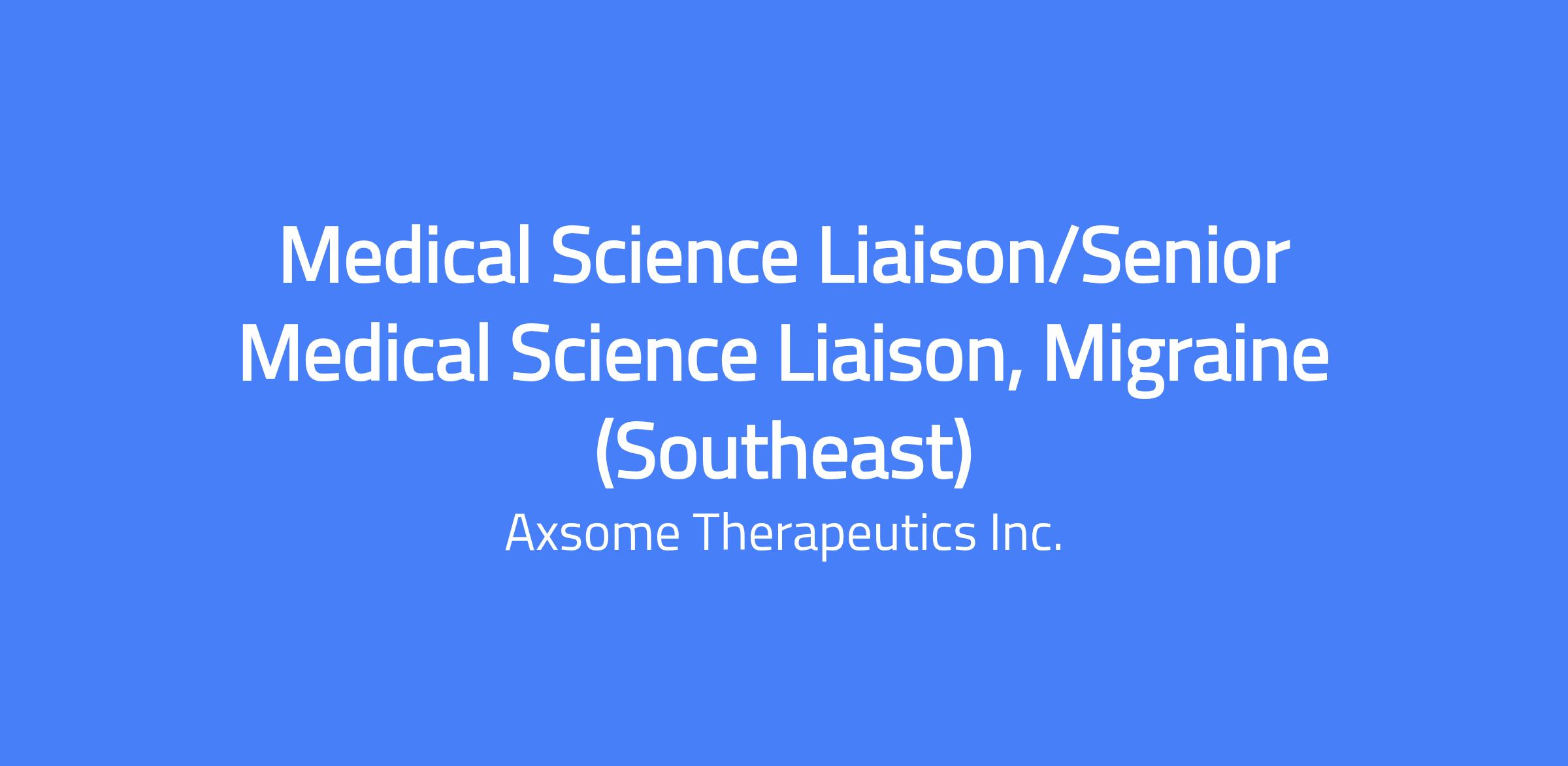 Axsome Therapeutics is seeking a Medical Science Liaison/Senior Medical Science Liaison to focus on developing the migraine franchise. The MSL/Senior MSL will be a key member of the Field Medical Affairs team at Axsome. This position will be the primary communicator of Axsome science and will be responsible for executing the national medical affairs plan within a specified territory. The MSL/Senior MSL will also provide support as needed for other pipeline programs.