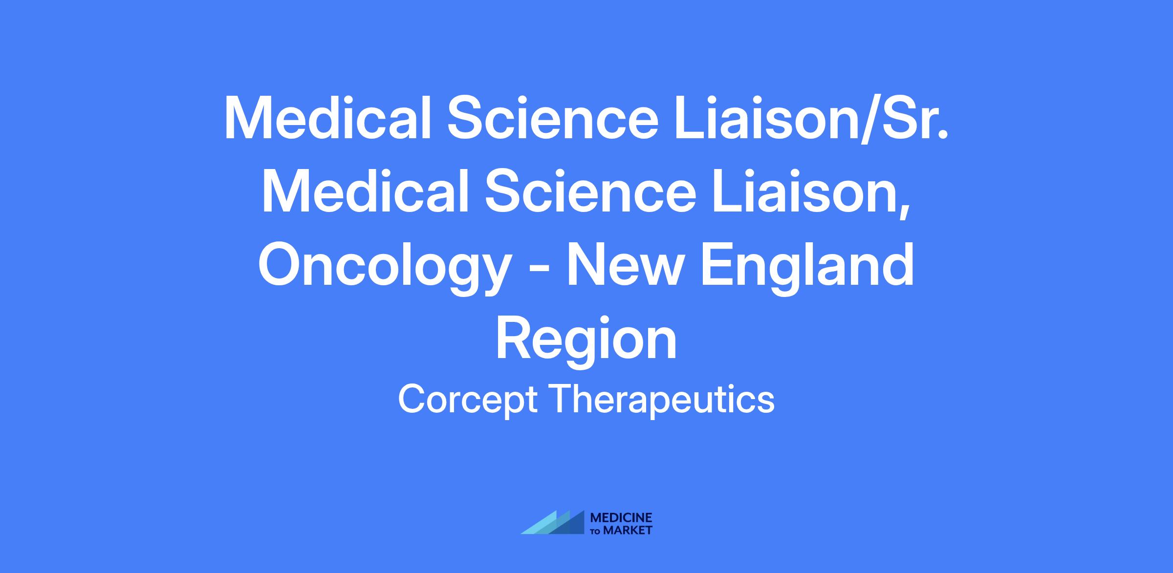 Medical Science Liaison/Sr. Medical Science Liaison, Oncology - New England Region for Corcept. The Oncology MSL role focuses on thought leader engagement, insight gathering, and scientific education in a cross-functional Oncology Business Unit, covering the Northeast Region (Vermont, Connecticut, Massachusetts, Rhode Island, New Hampshire, and Maine).