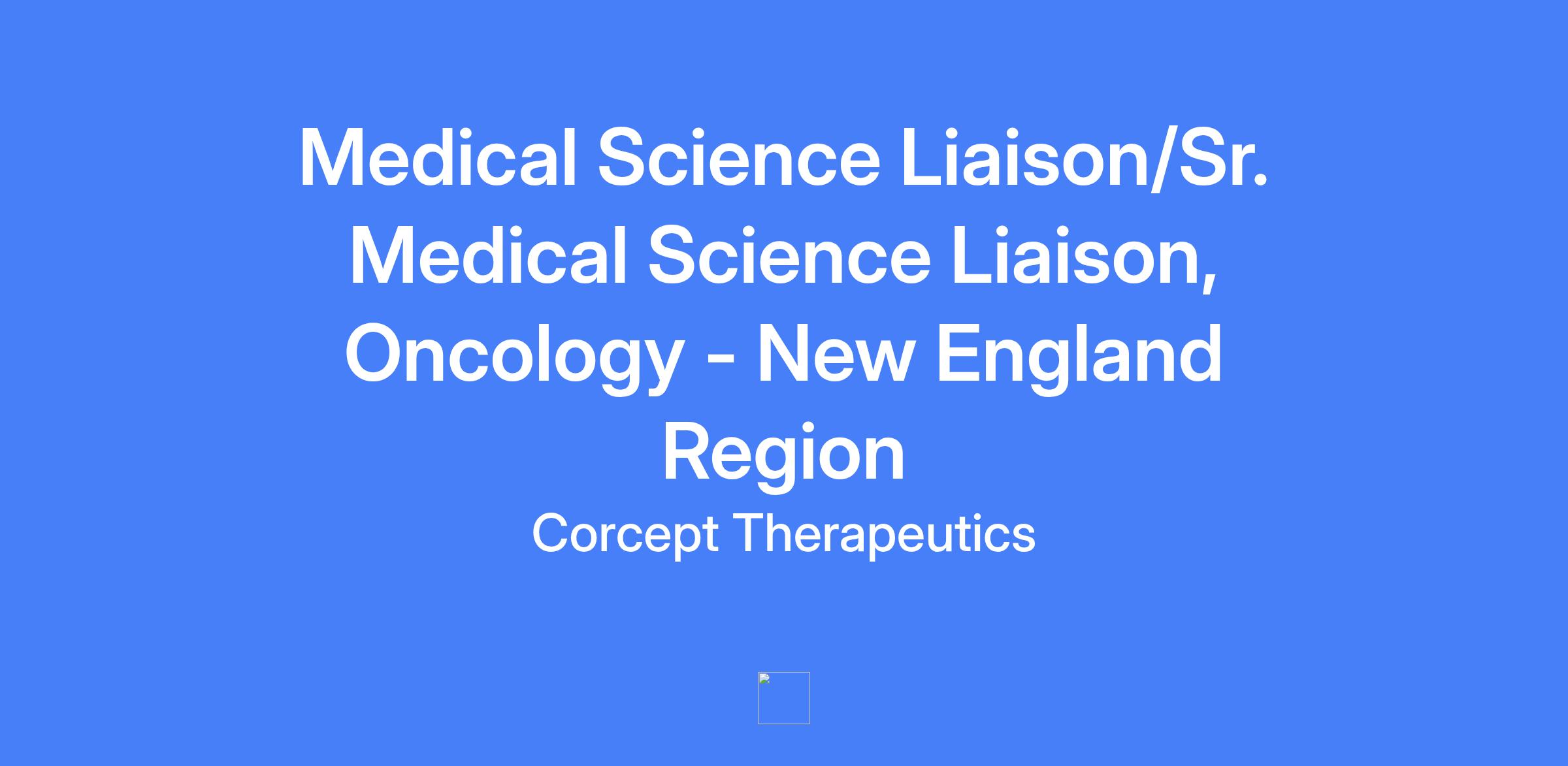Medical Science Liaison/Sr. Medical Science Liaison, Oncology - New England Region for Corcept. The Oncology MSL role focuses on thought leader engagement, insight gathering, and scientific education in a cross-functional Oncology Business Unit, covering the Northeast Region (Vermont, Connecticut, Massachusetts, Rhode Island, New Hampshire, and Maine).