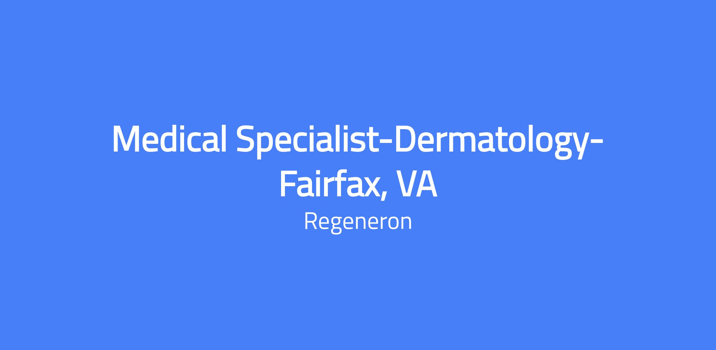 Medical Specialist โ Dermatology, Fairfax, VA. Our Medical Specialists engage dermatologists and other key customers with clinically-focused sales messaging that resonates and compels action. The role requires integrity and a commitment to doing what is right, aligned with our core beliefs and values. This is a fast-paced, results-oriented, customer-focused opportunity to join a high-performing team.