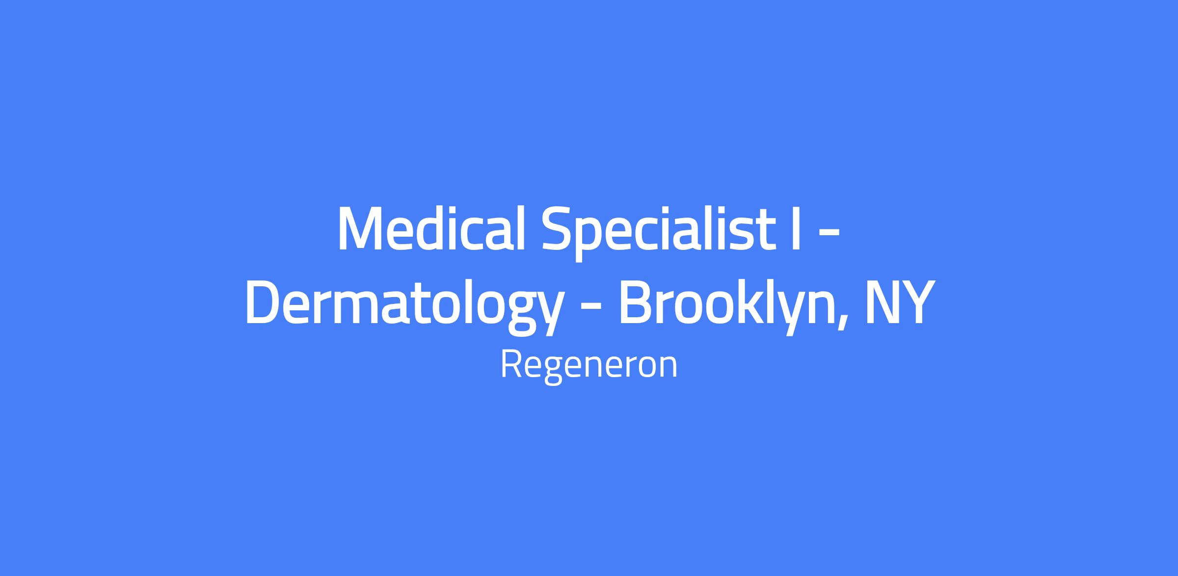 Location: Brooklyn, NY. Medical Specialist I in Dermatology engages with dermatologists and other key customers using clinically focused sales messaging. The role requires integrity and a commitment to doing what is right, in a fast-paced, results-oriented, customer-focused environment.