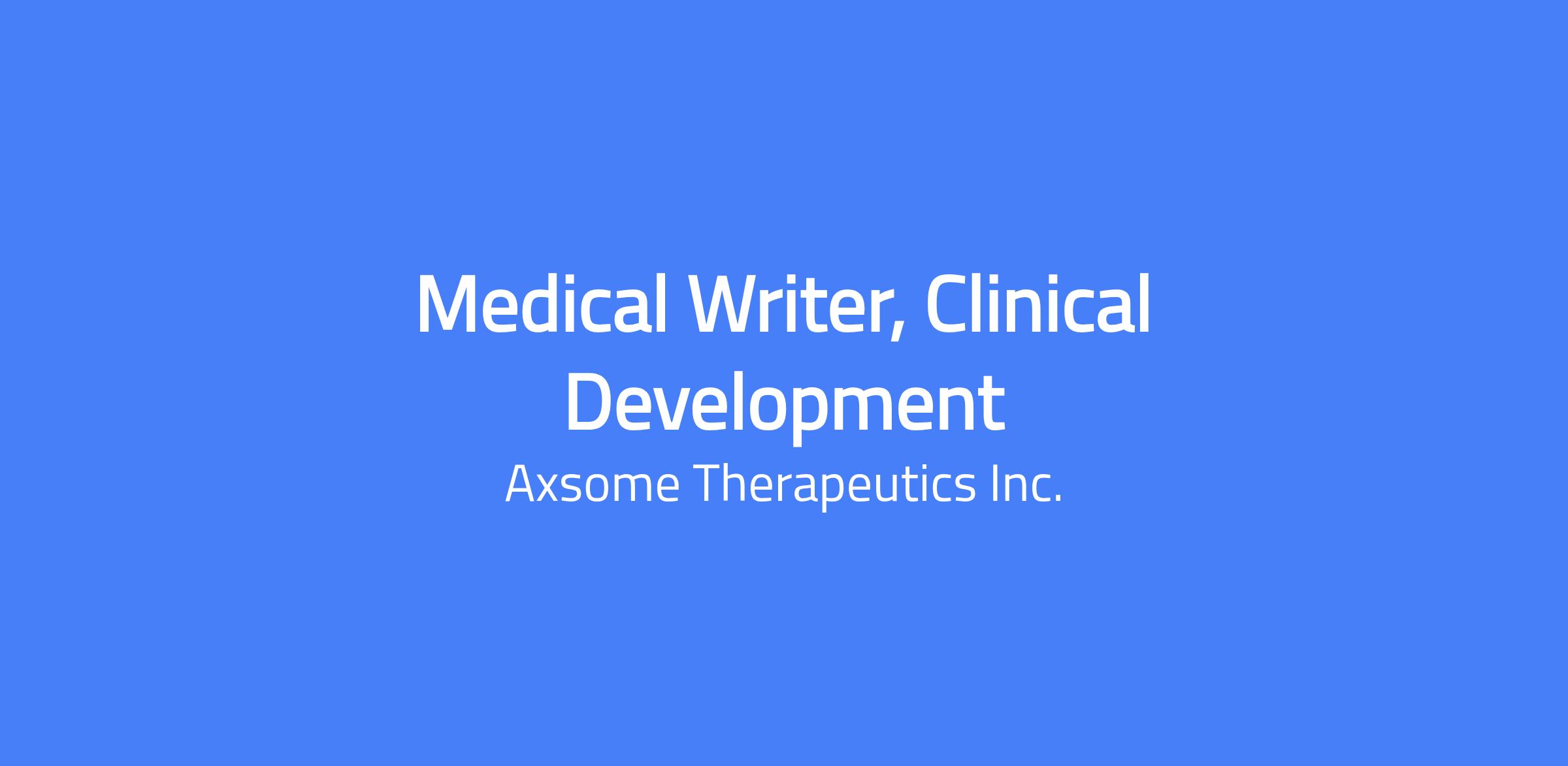 Axsome Therapeutics is seeking a highly collaborative Medical Writer to draft, edit and submit high quality, medically accurate documents including protocols and clinical study reports. This is a key position within the Clinical Development Group with ample opportunity to make real impact.