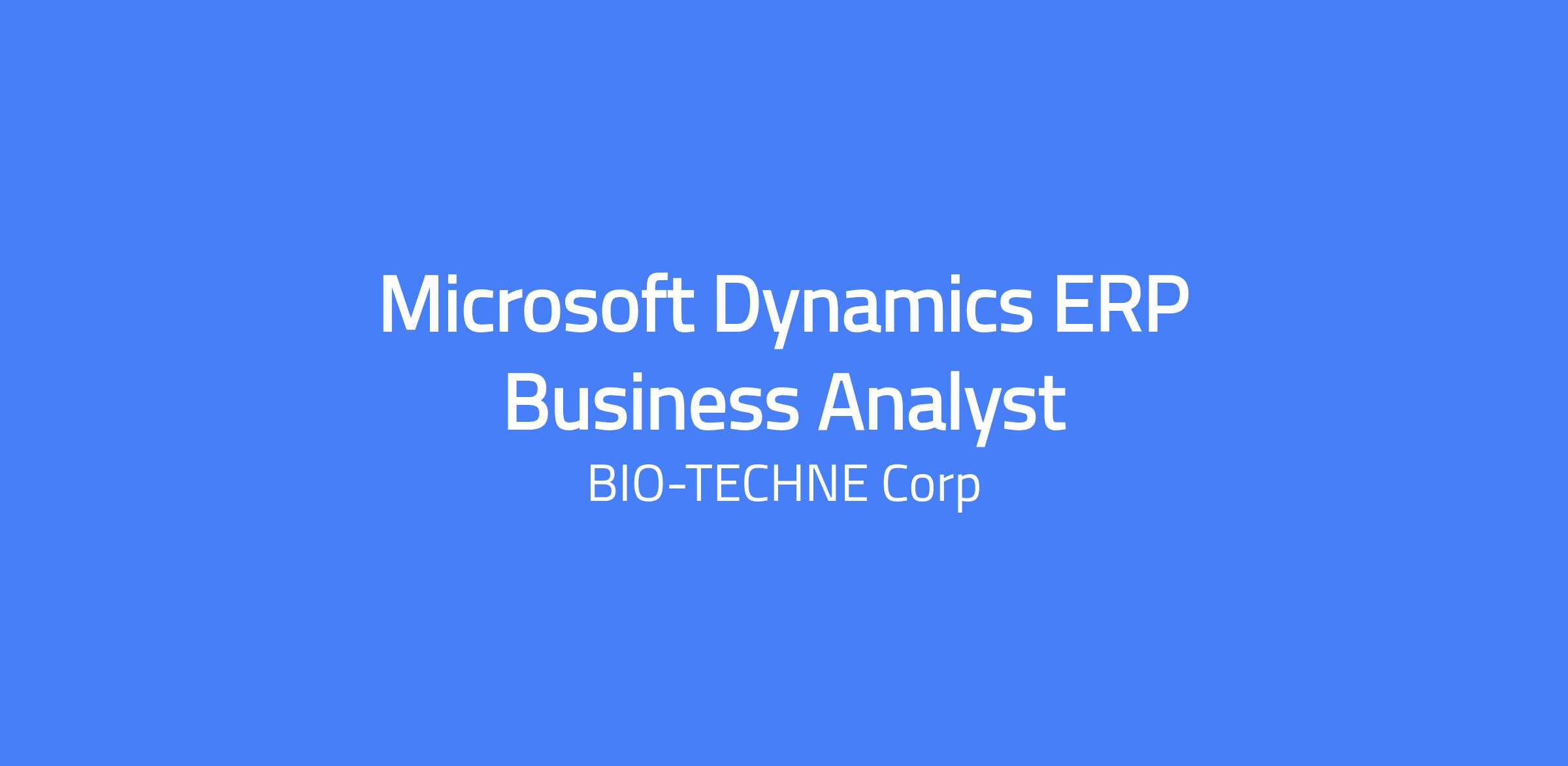 By joining Bio-Techne, youâll join a company with a powerful and positive purpose of enabling cutting-edge research in Life Sciences and Clinical Diagnostics. Bio-Techne, and all of its brands, provides tools for researchers to further treat and prevent disease worldwide. Pay Range: $62,300.00 - $102,350.00 We are seeking a highly skilled Microsoft Dynamics ERP Business Analyst to join our support/enhancement team. The ideal candidate will be experienced with Microsoft Dynamics 365 Finance & Operations or AX 2012. This position is responsible for helping manage end-user support, system enhancements, and integrations across multiple ERP systems. This individual will collaborate with teams across the organization to document and resolve issues and assist in building and implementing solutions that meet business needs. The candidate should also be self-motivated, proactive, committed to continuous learning, be able to thrive in a collaborative environment, enjoy empowering others and is an effective communicator. Work Environment This position is a hybrid remote role requiring a minimum of three (3) days on-site per week, Monday through Friday. Key Responsibilities Provide day-to-day ERP application support by troubleshooting and resolving issues enabling end users to perform daily functions. Monitor, maintain, and support automated ERP business processes to ensure critical business functions operate smoothly. Assist with updating and maintaining ERP data and data integrity. Develop and maintain ERP training documentation and provide training to end users. Collaborate with fellow team members, end users, stakeholders, and subject matter experts on various initiatives. Perform discovery to identify, define, and document requirements into viable business solutions and functional design documents (FDDs), and work with development teams to build proposed solutions. Identify, document, test, and validate ERP setup, configuration, and integration changes required by the business. Manage intake and triage of incoming ERP access requests and support tickets from end users. Perform system testing and support user acceptance testing Qualifications Education and Experience Minimum of 2â3 years of experience working with Microsoft Dynamics 365 Finance & Operations or AX 2012. Preferred experience supporting ERP systems as part of an IT, software development, or data systems team. Experience with logistics, inventory, and warehouse functions including picking/packing, product setup and maintenance, warehouse setup and configuration, and shipping processes. Strong verbal and written communication skills with the ability to explain technical concepts to non-technical audiences. Ability to work effectively in a fast-paced environment. Knowledge, Skills, and Abilities Strong troubleshooting abilities Able to provide support and assistance to ERP end users. Ability to gather requirements and turn into functional design documents. Ability to collaborate professionally with internal and external stakeholders. Strong problem-solving and analytical skills. Ability to communicate effectively with globally distributed teams. Ability to organize and prioritize work across multiple projects and deadlines. Ability to document procedures and configurations clearly, concisely, and accurately. Ability to work independently and adjust priorities as business needs shift. High attention to detail and accuracy. Able to support change management and communication related to ERP changes and releases Assist in monitoring system performance and proactively identify risks or issues Why Join Bio-Techne: We offer competitive insurance benefits starting on day one: medical, dental, vision, life, short-term disability, long-term disability, pet, and legal and ID shield. We invest in our employeesâ financial futures through 401k plans, an employee stock purchase plan (ESPP), Health Saving Account (HSA), Flexible Spending Account (FSA), and Dependent Care FSA. We empower our employees develop their careers through mentorship, promotional opportunities, training and development, tuition reimbursement, internship programs, and more. We offer employee resource groups, volunteer paid time off, employee events, and charity drives to build a culture of caring and belonging. We offer an accrued leave policy with paid holidays, paid time off, and paid parental leave. We foster a culture of empowerment and innovation, where employees feel valued and encouraged to bring their new ideas to the table. Bio-Techne is an E-Verify Employer in the United States. All qualified applicants will receive consideration for employment without regard to race, color, religion, sex, sexual orientation, gender identity, national origin, disability, or status as a protected veteran. To protect the interests of all, Bio-Techne will not accept unsolicited resumes from any source other than a candidate application. Any unsolicited resumes sent to Bio-Techne will be considered Bio-Techne property. Bio-Techne empowers researchers in Life Science and Clinical Diagnostics by providing high-quality reagents, instruments, custom manufacturing, and testing services. Our family of brands creates a unique portfolio of products and services. Science is our passion; it drives us to collaborate, develop, and manufacture award-winning tools that help researchers achieve reproducible and consistent results.