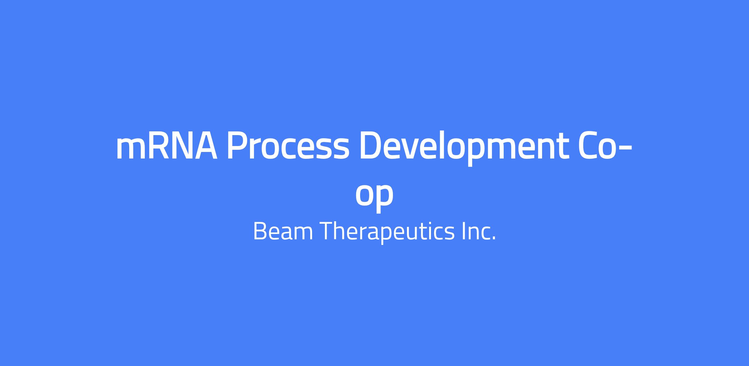 Beam is looking for a highly motivated Co Op to join our Process Development Team from July to Dec of 2026. The Co Op will assist in development and optimization of linearized plasmid DNA manufacturing processes. Specifically, this role will involve performing and optimizing plasmid isolation, linearization, and chromatographic purification. The ideal candidate for this role is detail-oriented, persistent, and has an innovative mindset toward solving technical challenges. This position will play a central role in developing internal capabilities for plasmid linearization and purification development while providing the individual exposure to one of the most important classes of medication of the 21st century. Â