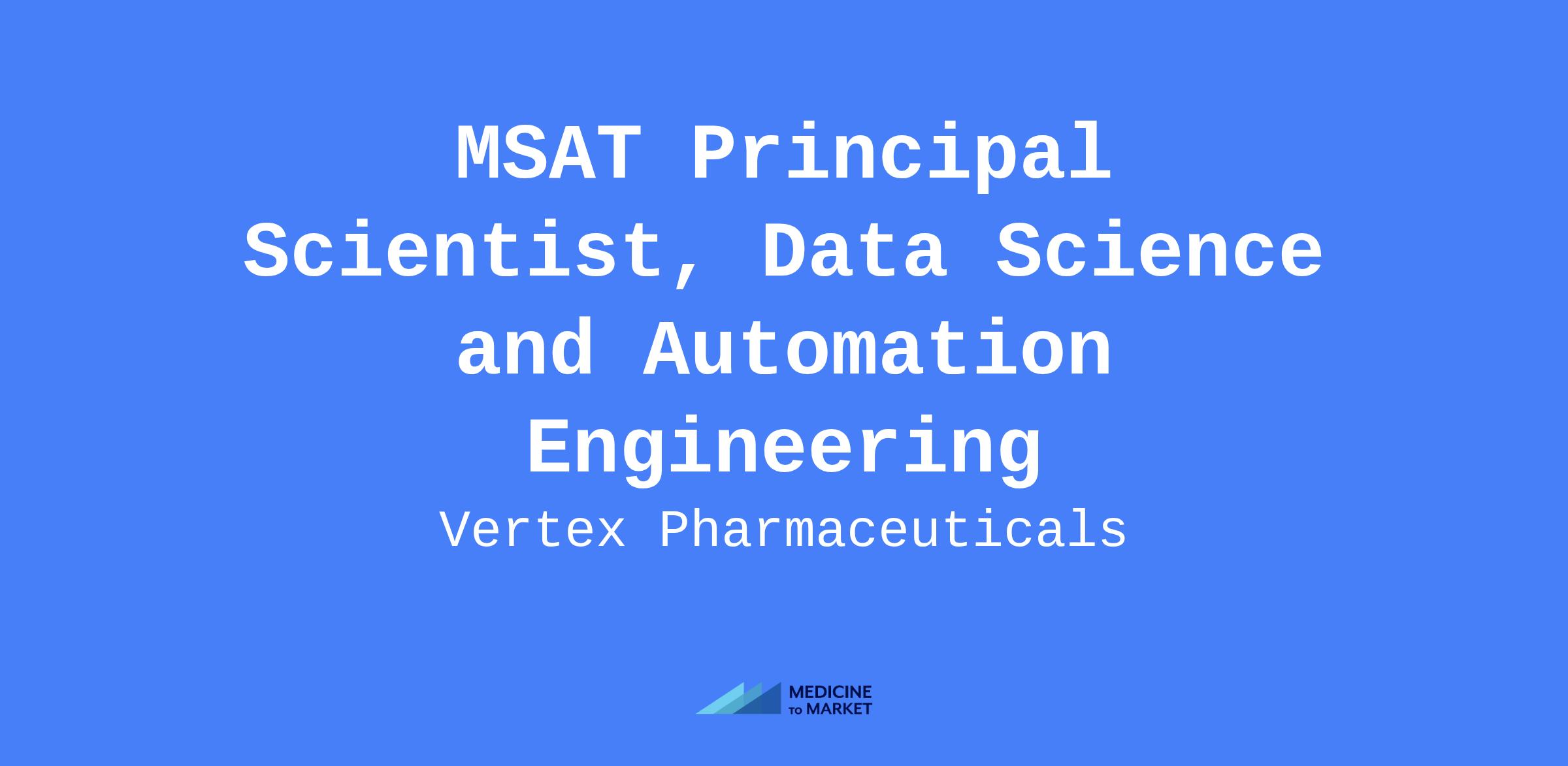MSAT Principal Scientist, Data Science and Automation Engineering role supporting commercial Cell and Gene Therapy programs. Responsible for technical support aligned with program priorities related to data acquisition, analysis, trending, visualization, and reporting.