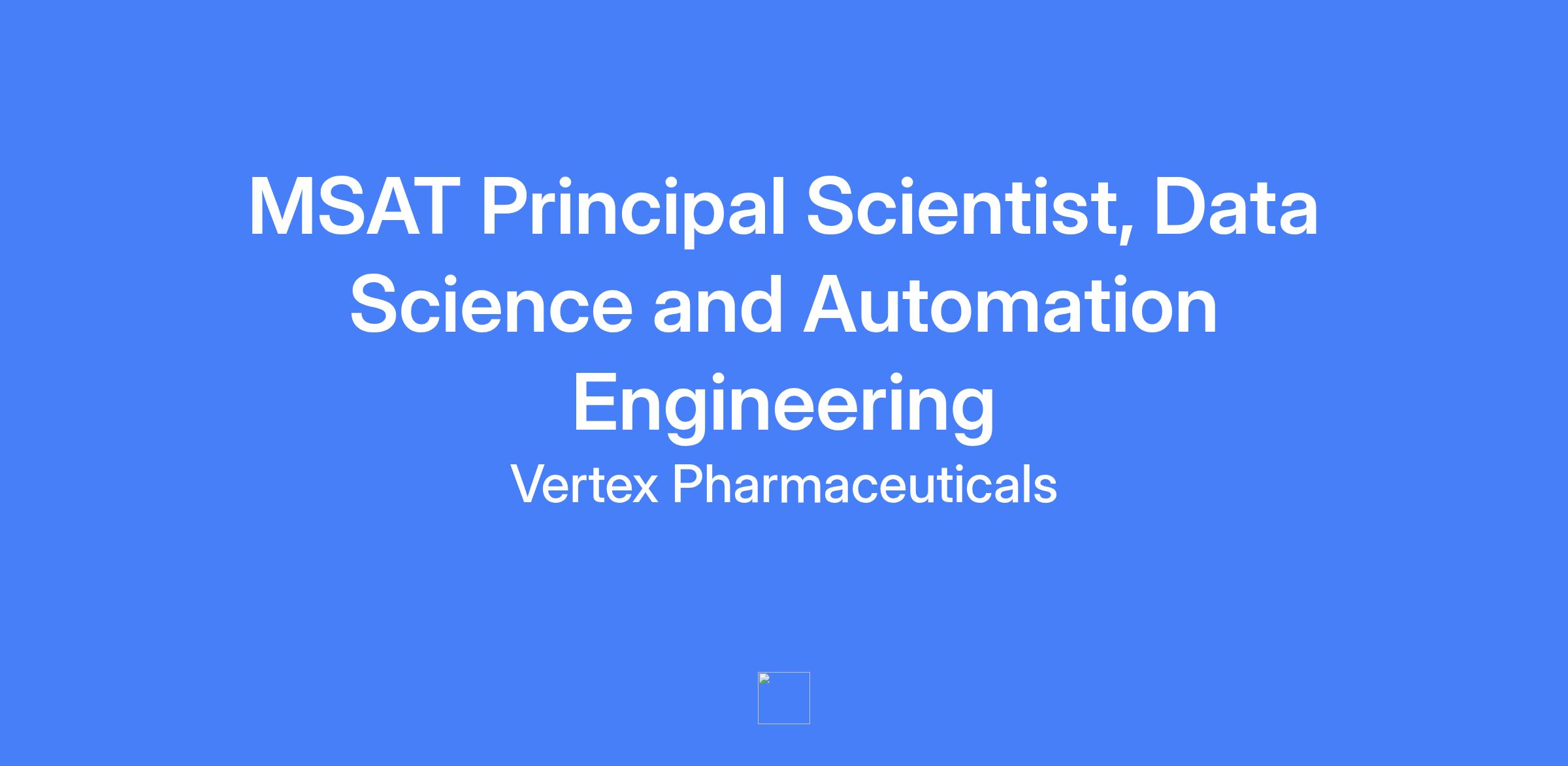 MSAT Principal Scientist, Data Science and Automation Engineering role supporting commercial Cell and Gene Therapy programs. Responsible for technical support aligned with program priorities related to data acquisition, analysis, trending, visualization, and reporting.
